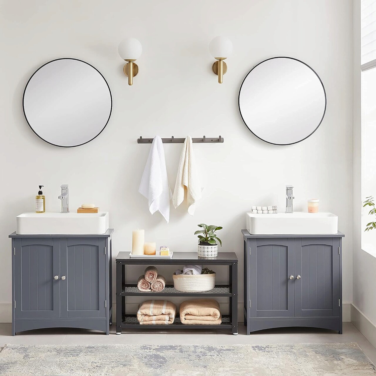 Dulap pentru baie / masca de lavoar, Vasagle, 60x30x60 cm, MDF, gri inchis