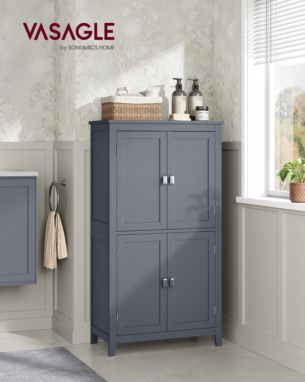 Dulap pentru baie, Vasagle, 60x30x110 cm, MDF, gri