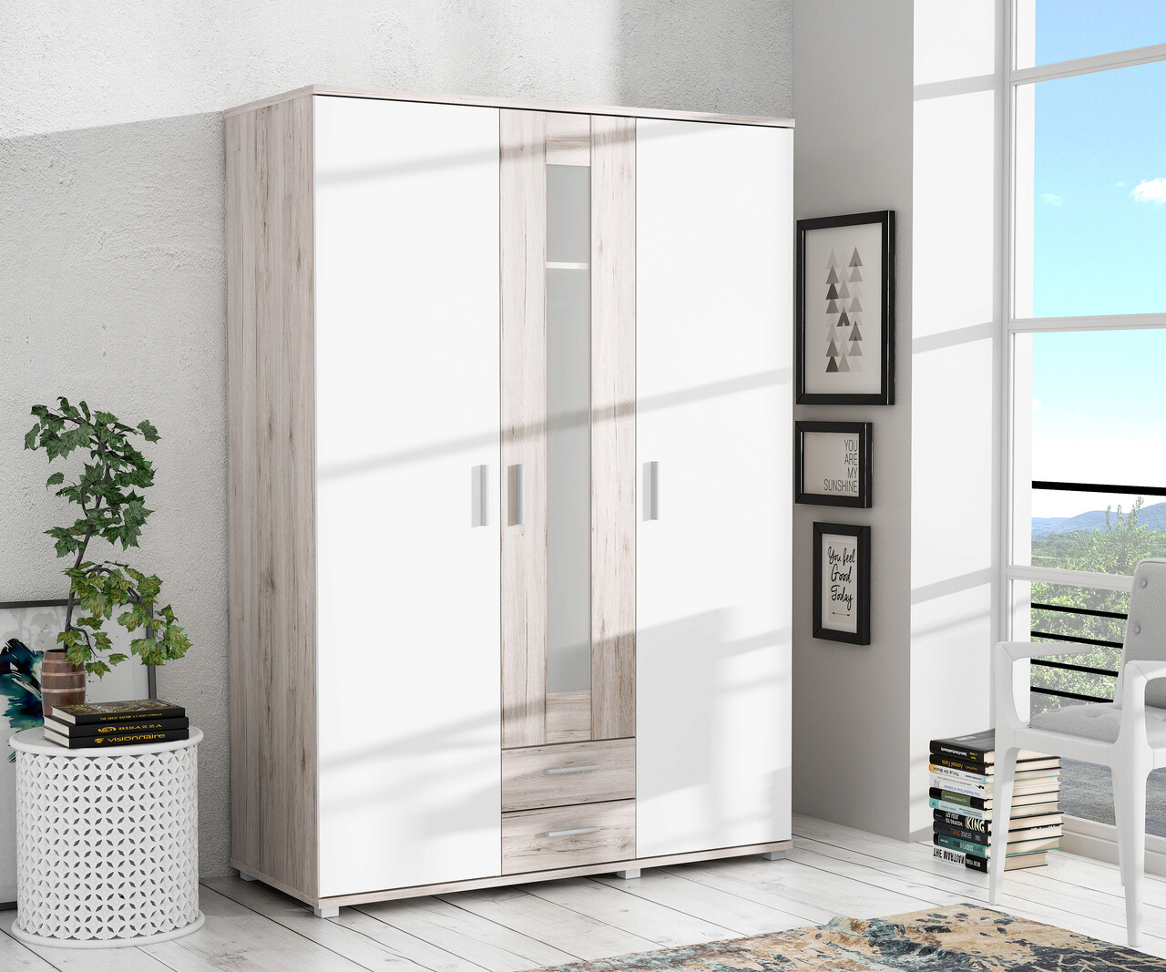 Dulap pentru haine Breda, Bedora, 139.5x57.7x199.6 cm, PAL/plastic, stejar/alb