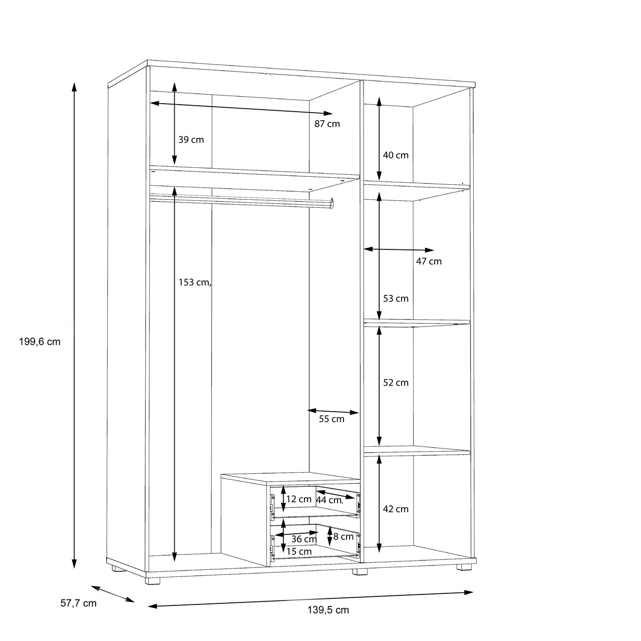 | Dimensiuni | 139.5x57.7x199.6 cm |