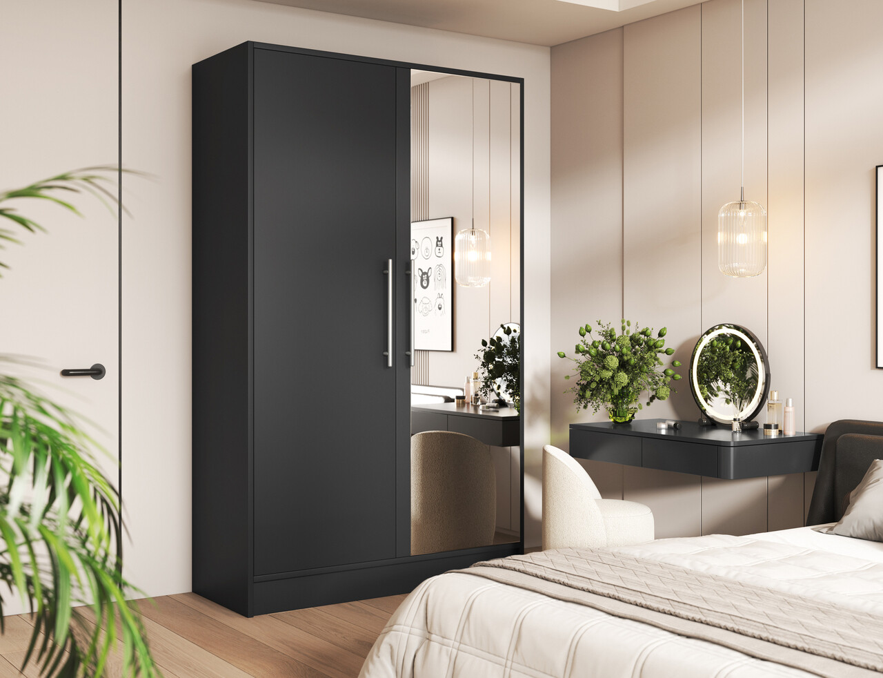• Dulap pentru haine cu oglinda ELTAP, Alarica, 120x60x200 cm, PAL, negru