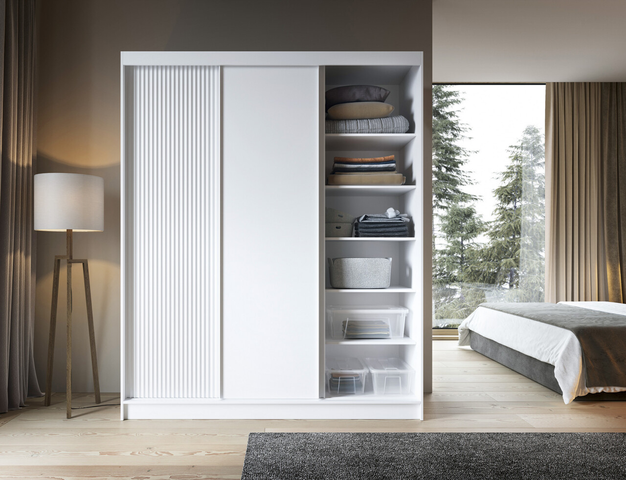 Dulapul pentru haine Biancco este o solutie practica si eleganta pentru organizarea spatiului din interiorul dormitorului dumneavoastra. Intr-o culoare alba eleganta, acest dulap nu numai ca ofera spatiu de depozitare convenabil, dar adauga si armonie si estetica. Corpul sau este fabricat din panouri MDF durabile cu grosimea de 16 mm, iar marginea ABS nu numai ca protejeaza impotriva deteriorarii, dar subliniaza si estetica intregii constructii. Capacitatea maxima de incarcare a rafturilor este de 10 kg fiecare, permitand depozitarea diferitelor articole, de la haine la accesorii. Dulapul este prevazut cu sase rafturi rezistente care ajuta la mentinerea ordinii si organizarii. Picioarele dulapului, realizate din plastic rezistent, au o inaltime de 0.5 cm si dispun de glisiere albe. Tijele incluse permit agatarea hainelor pe umerase, sporind si mai mult functionalitatea dulapului. Aceasta solutie practica ajuta la organizarea si ordonarea dulapului. Pe scurt, dulapul pentru haine Biancco cu trei usi, una din ele prevazuta cu oglinda, este o solutie de depozitare functionala si eleganta care se potriveste perfect in orice tip de interior. Constructia sa solida si caracteristicile practice asigura durabilitate si satisfactie pentru multi ani de utilizare.