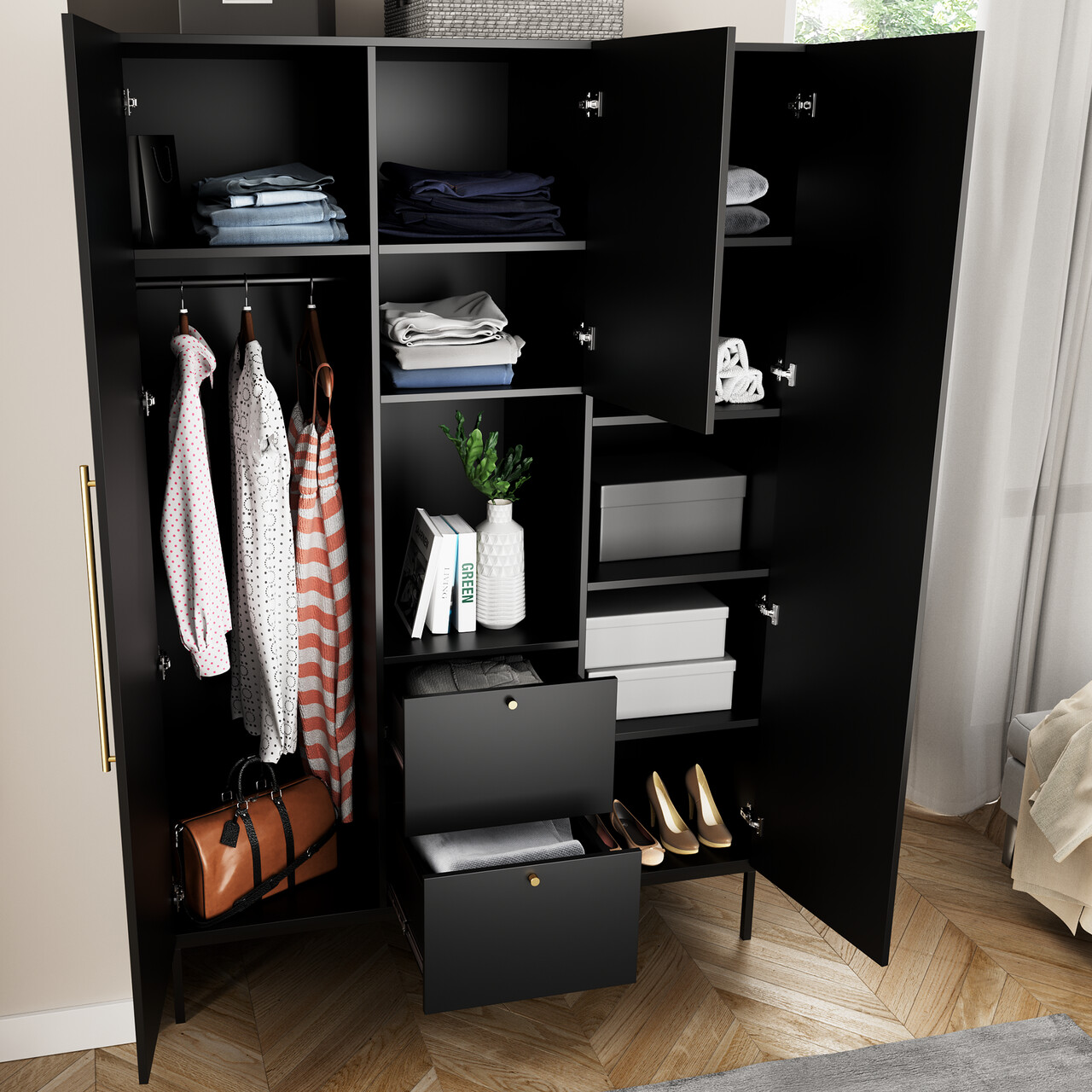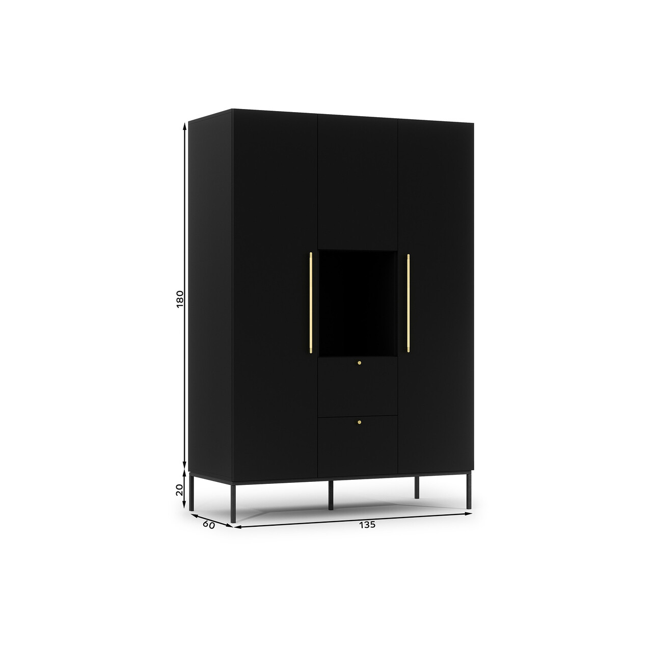 Dulap pentru haine ELTAP, Lanzzi, 135x60x200 cm, MDF laminat, negru/auriu
