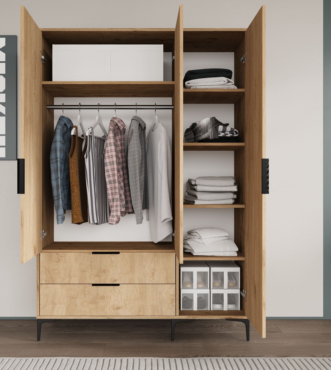 Dulap pentru haine, Hanah Home, Aden Drawers 120, 120x192x45 cm, Stejar
