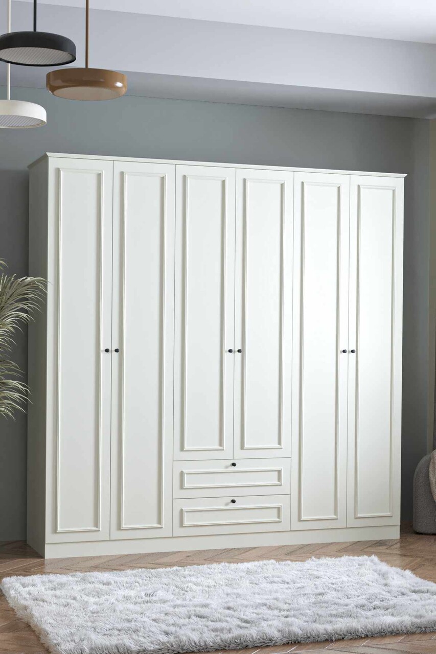 Dulap pentru haine, Hanah Home, Mira 6 210, 209x210x54 cm, Alb