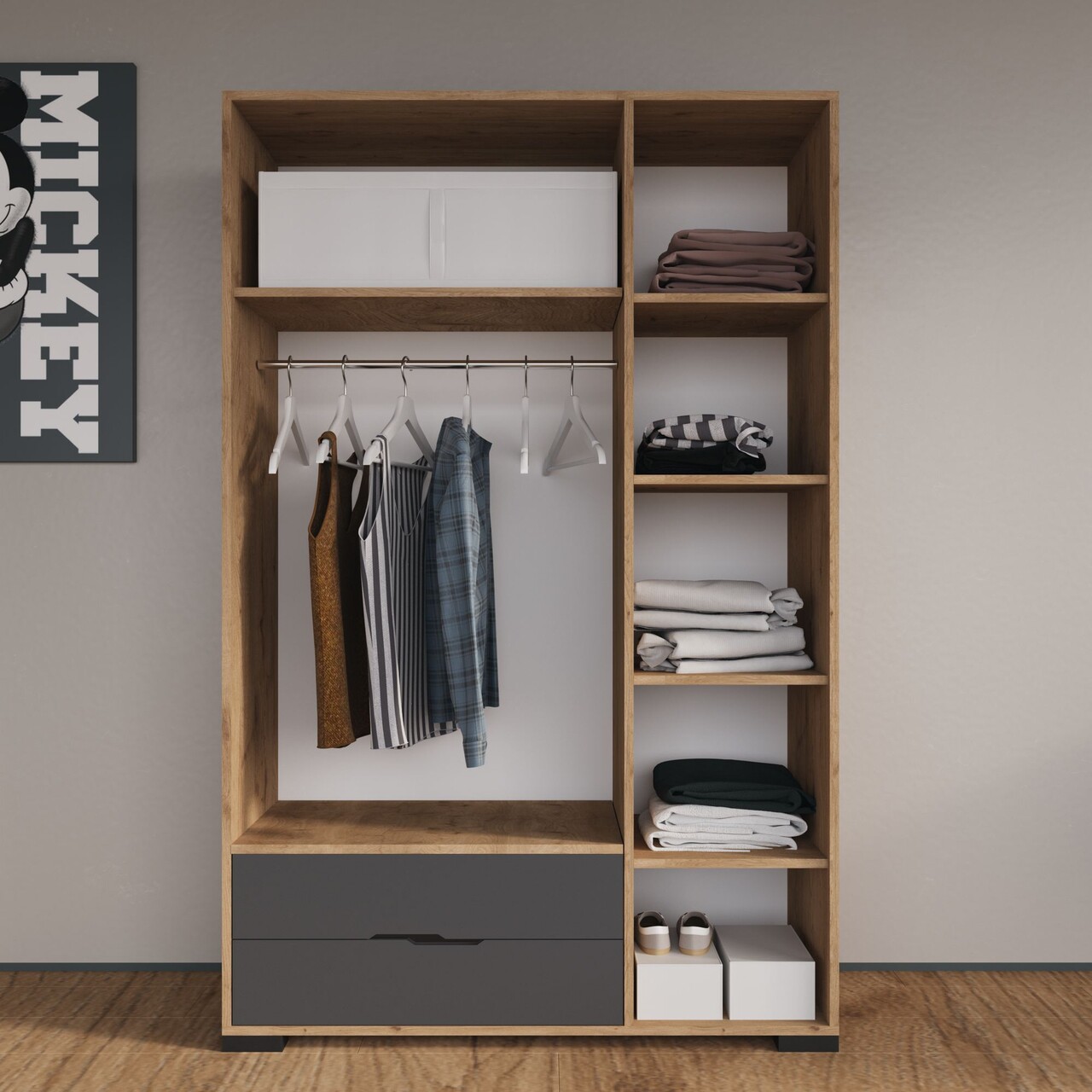 Dulap pentru haine, Hanah Home, Royal Drawers 120, 120x183x45 cm, Stejar / Antracit
