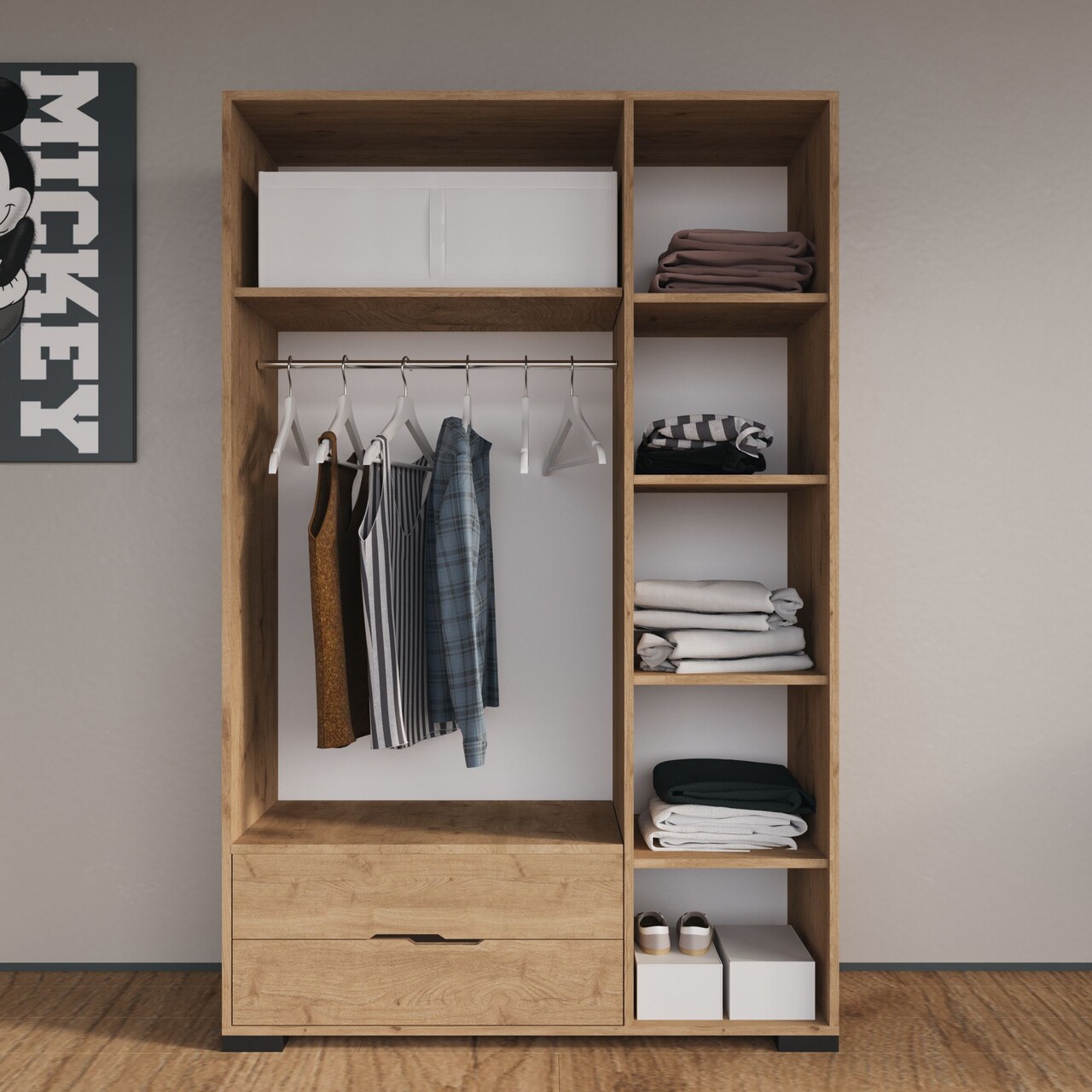 Dulap pentru haine, Hanah Home, Royal Drawers 120, 120x183x45 cm, Stejar