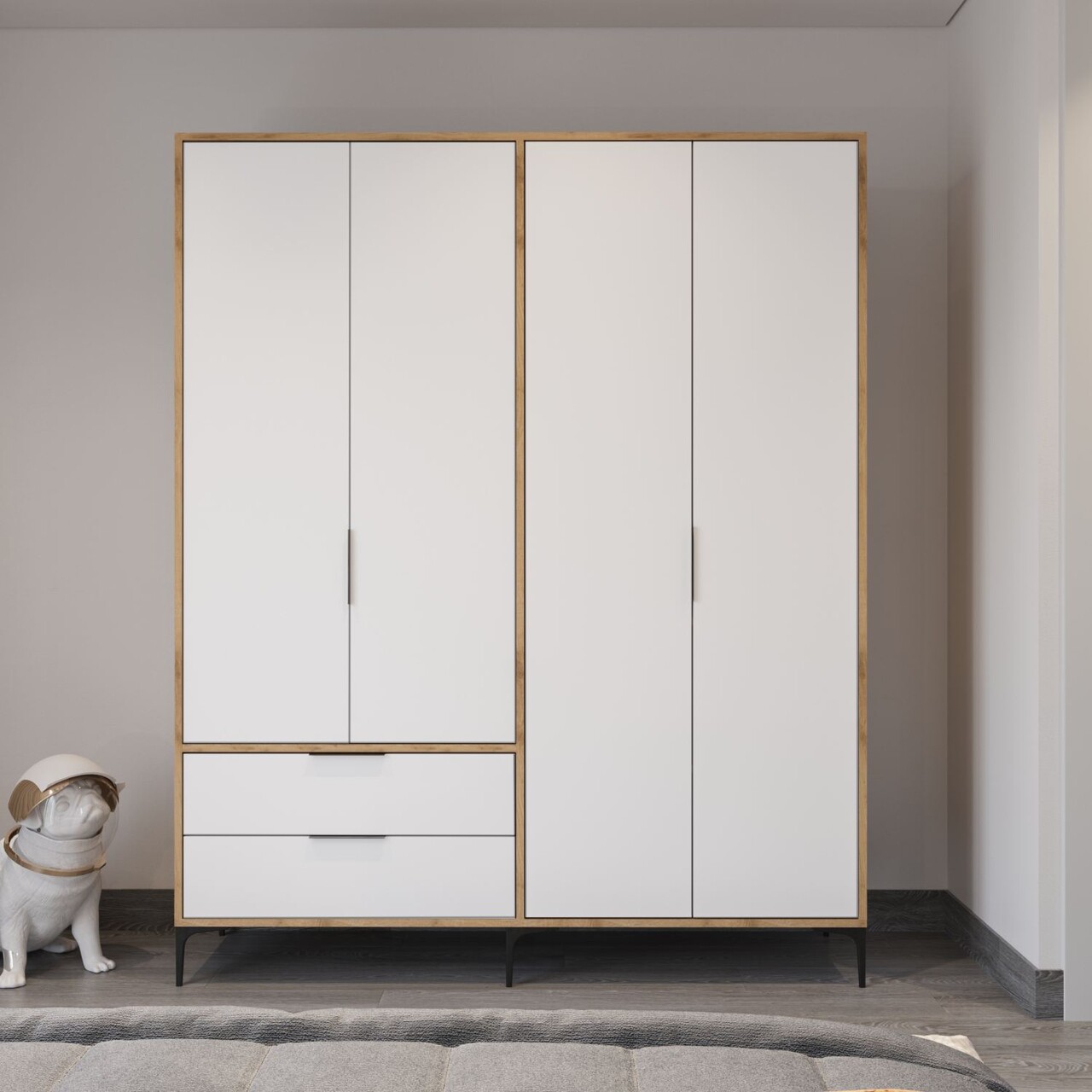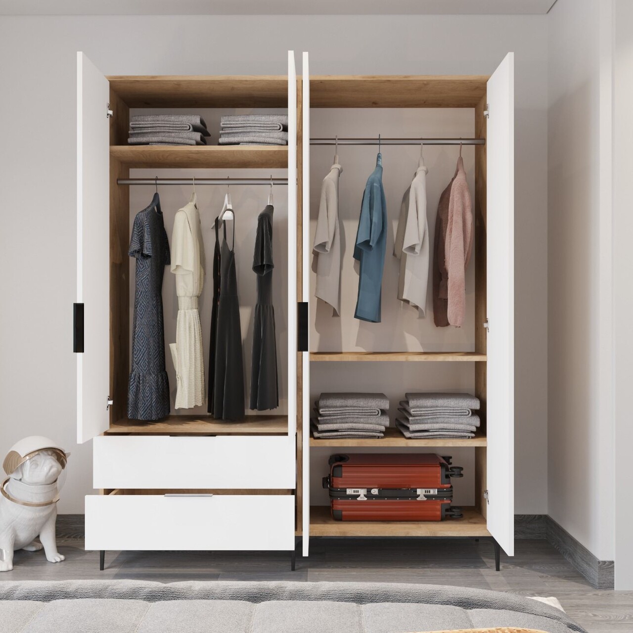 Dulap pentru haine, Hanah Home, Royal Drawers 160, 160x183x45 cm, Stejar / Alb