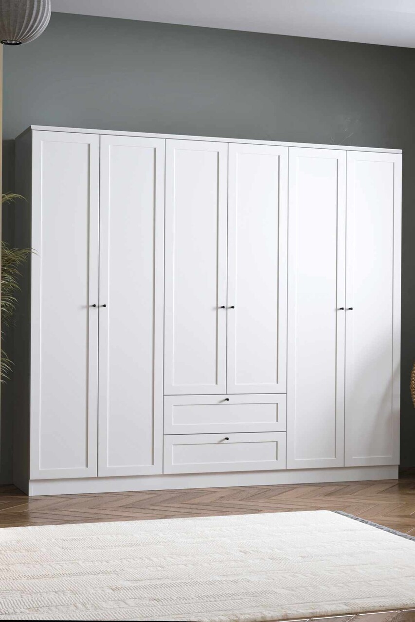 Dulap pentru haine, Hanah Home, Terra 6 182, 205x182x52 cm, Alb