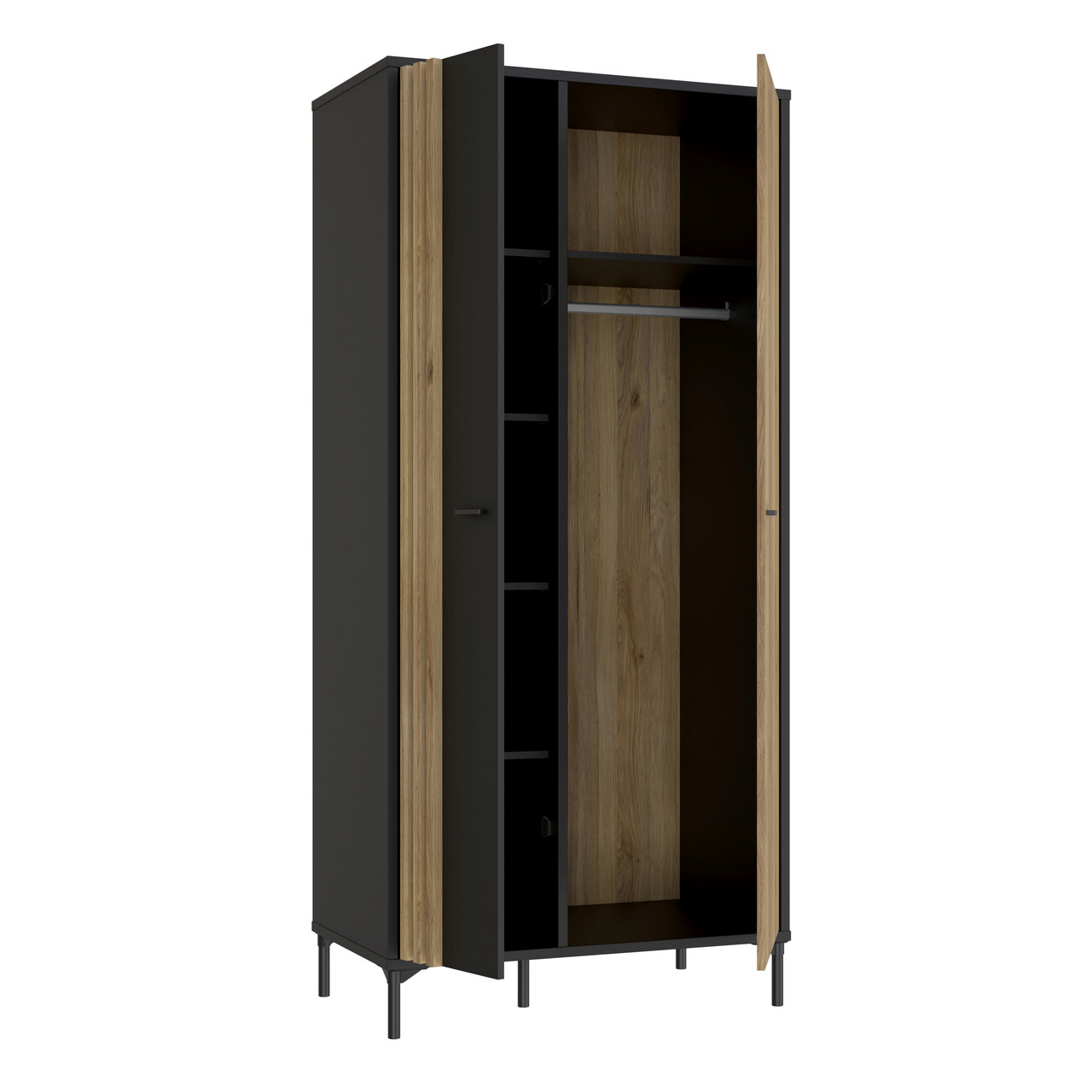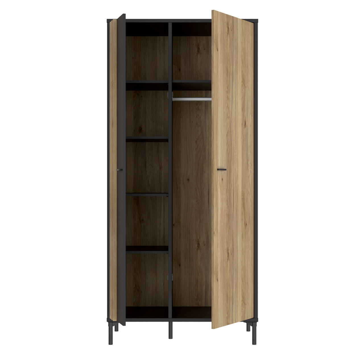 Dulap pentru haine Kampen, Bedora, 92x52.2x198.2 cm, PAL/plastic, stejar/negru