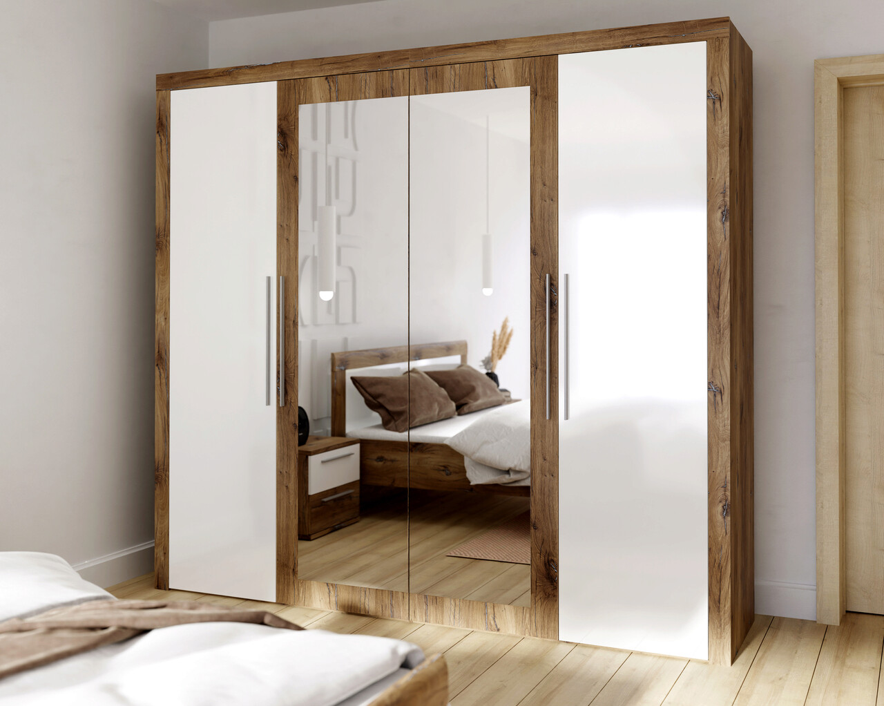 Dulap pentru haine Leudal, Bedora, 241.5x59x219.9 cm, PAL/plastic, stejar/alb lucios
