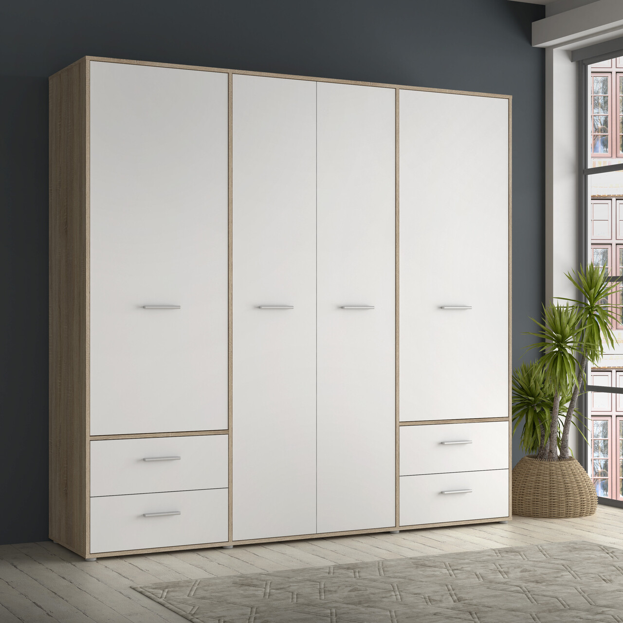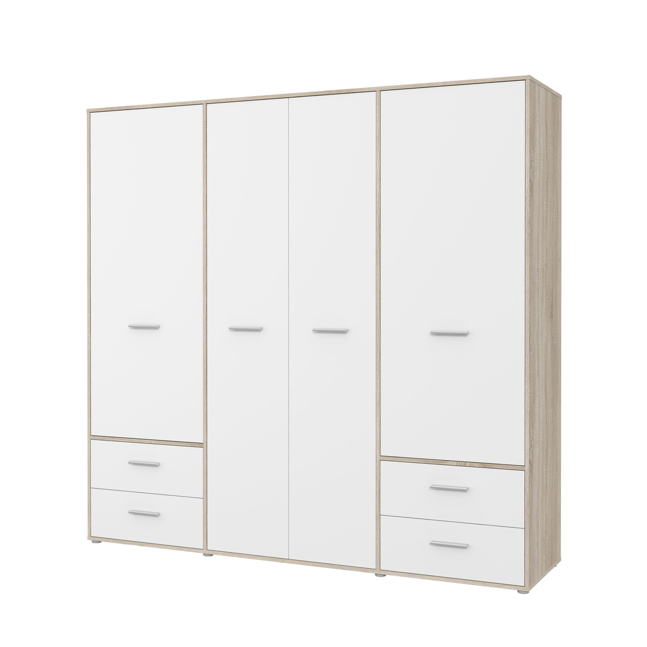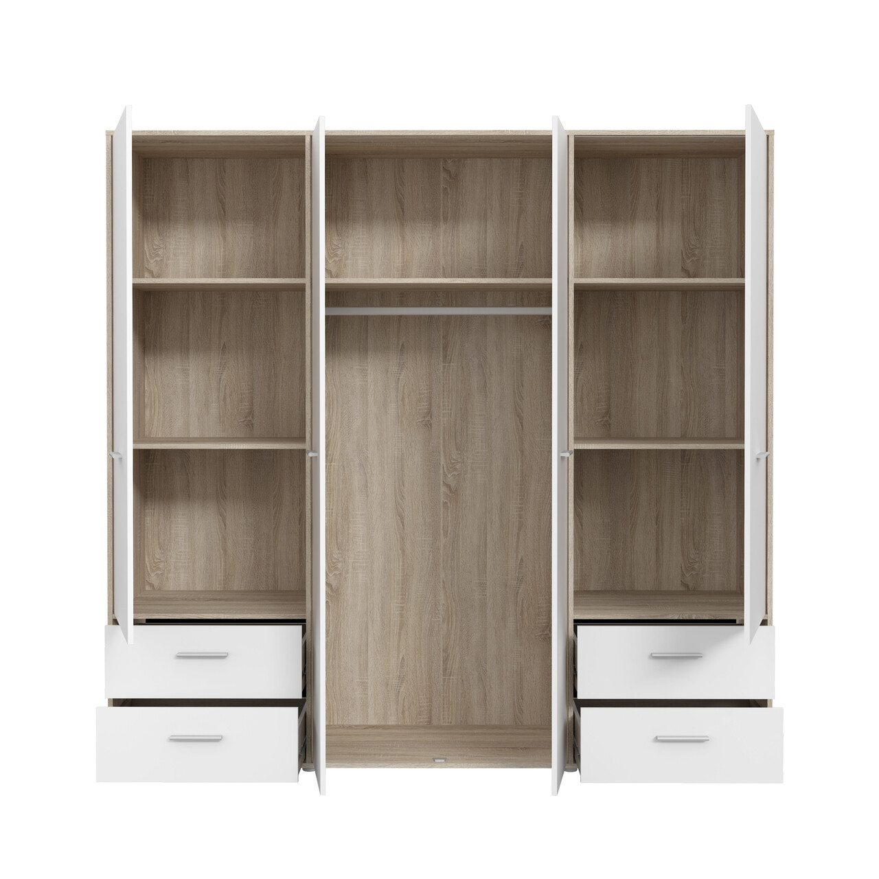 Dulap pentru haine Meerlo, Bedora, 205.9x52.7x200.1 cm, PAL/plastic, alb/stejar