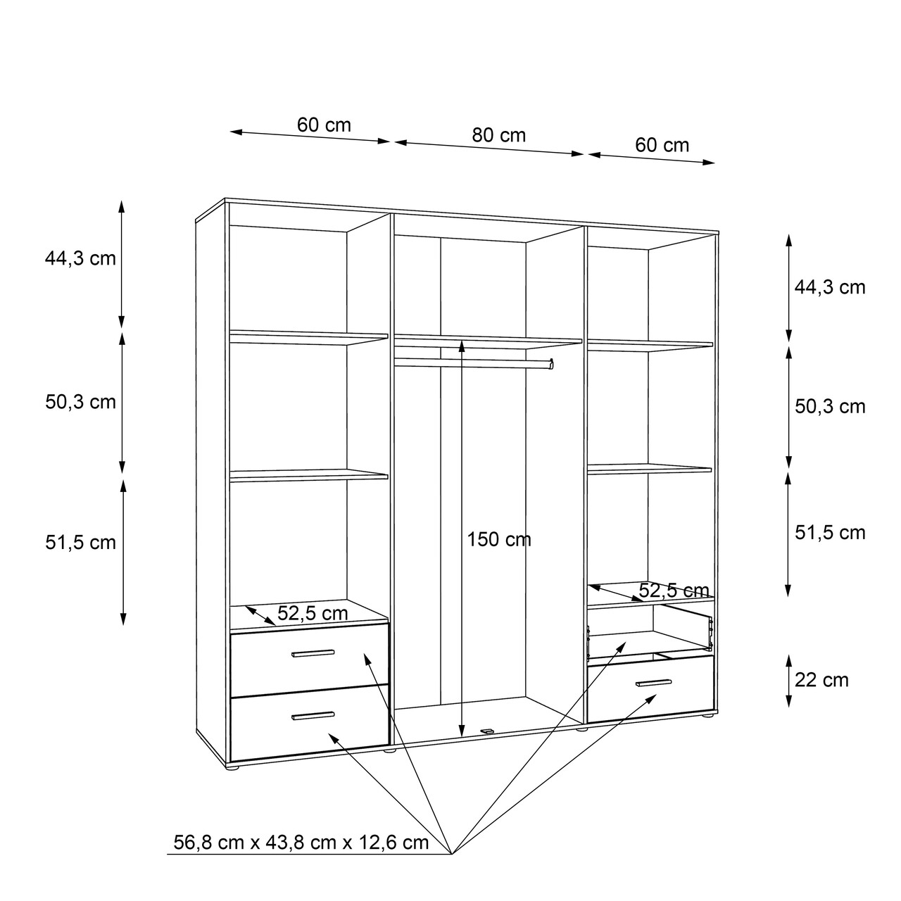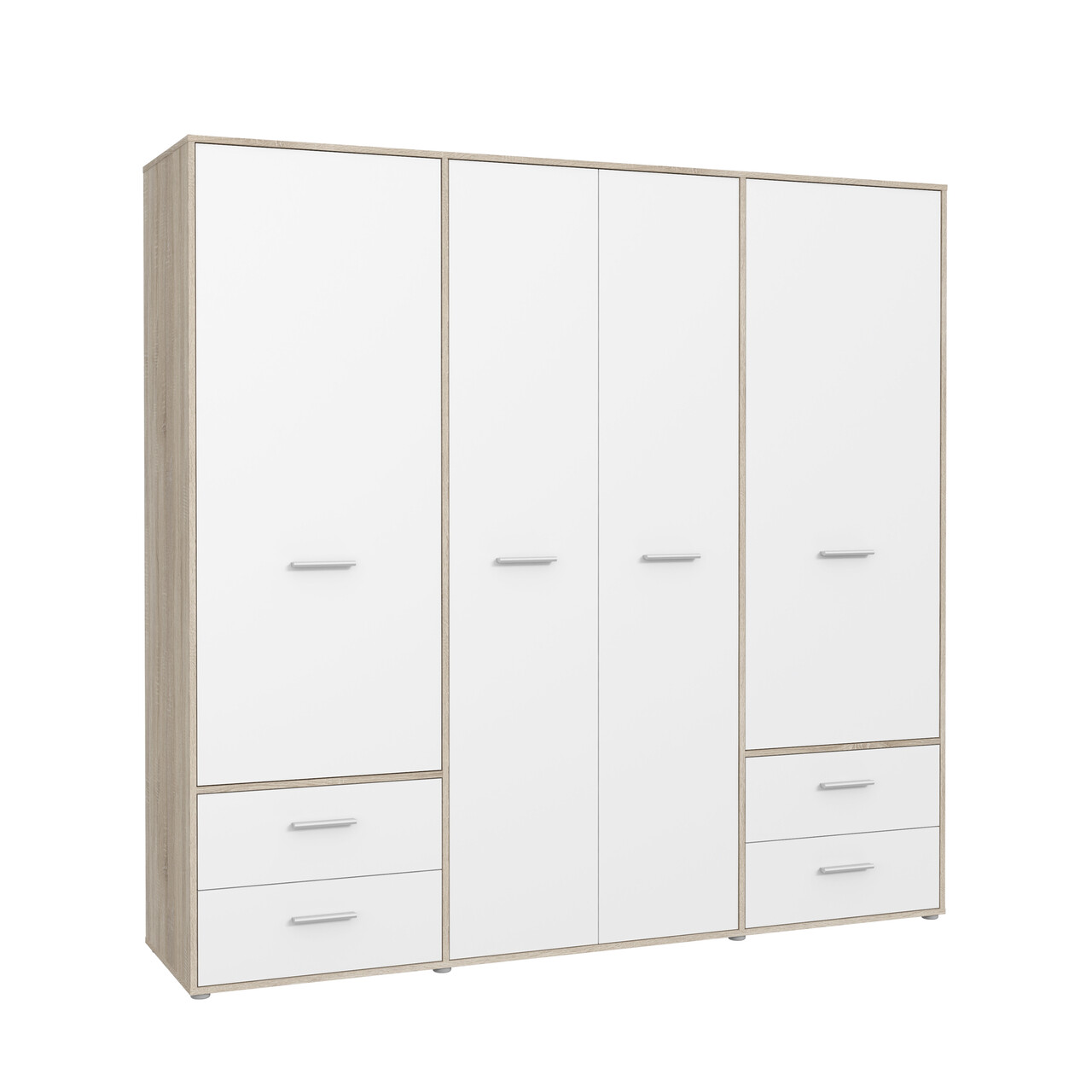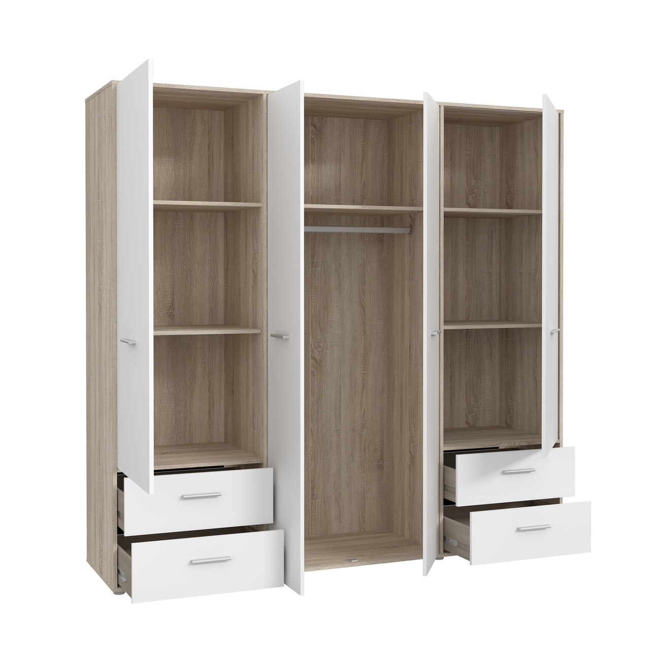 Dulap pentru haine Meerlo, Bedora, 205.9x52.7x200.1 cm, PAL/plastic, alb/stejar