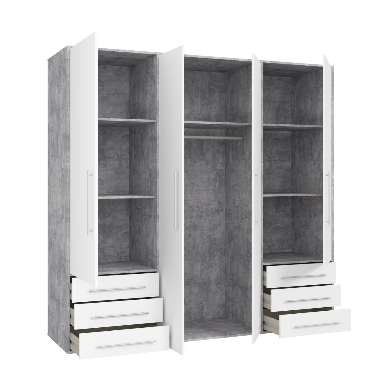 Dulap pentru haine Meerlo, Bedora, 205.9x58.8x200 cm, PAL/metal, gri deschis/alb