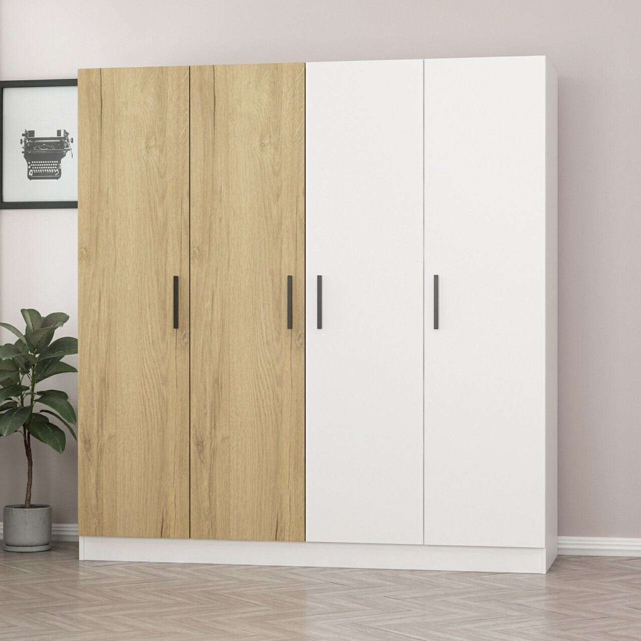 Dulap pentru haine, Minerva, Kale, 180x190x52 cm, PAL, Nuc/Alb