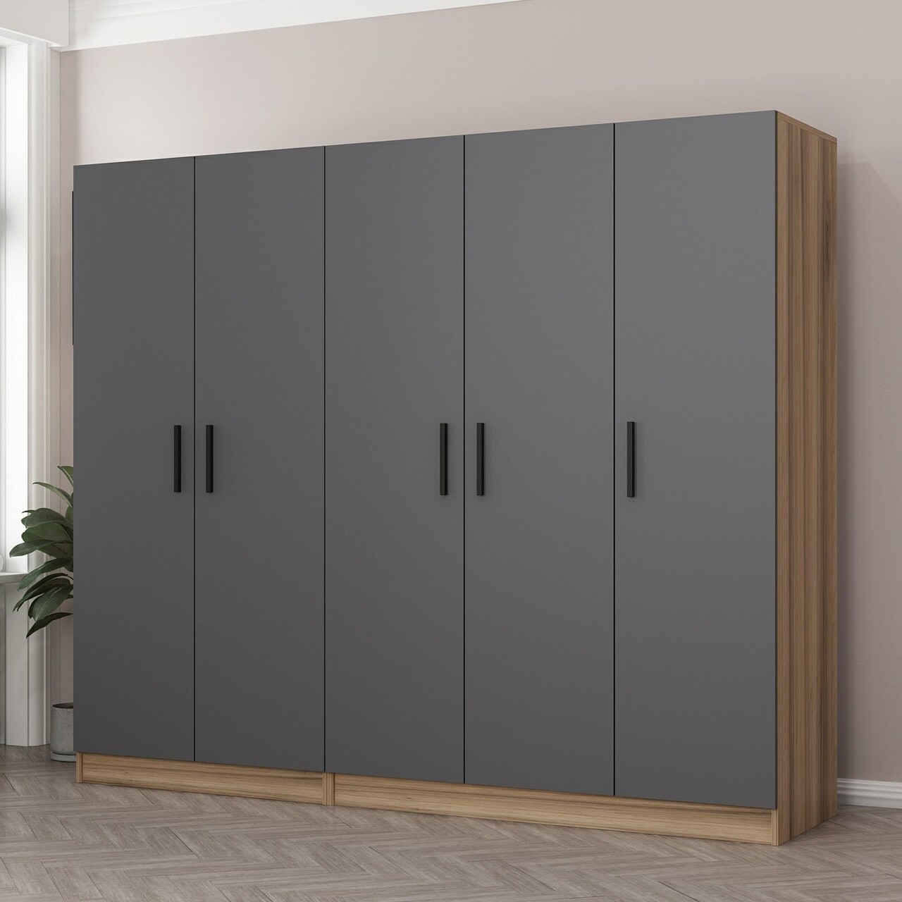 Dulap pentru haine, Minerva, Kale, 225x210x52 cm, PAL, Antracit