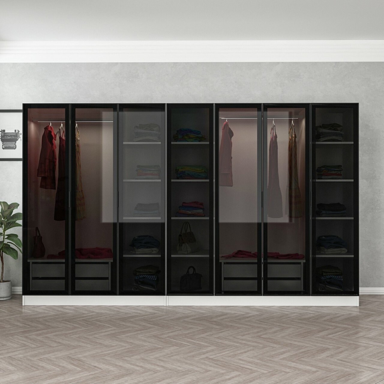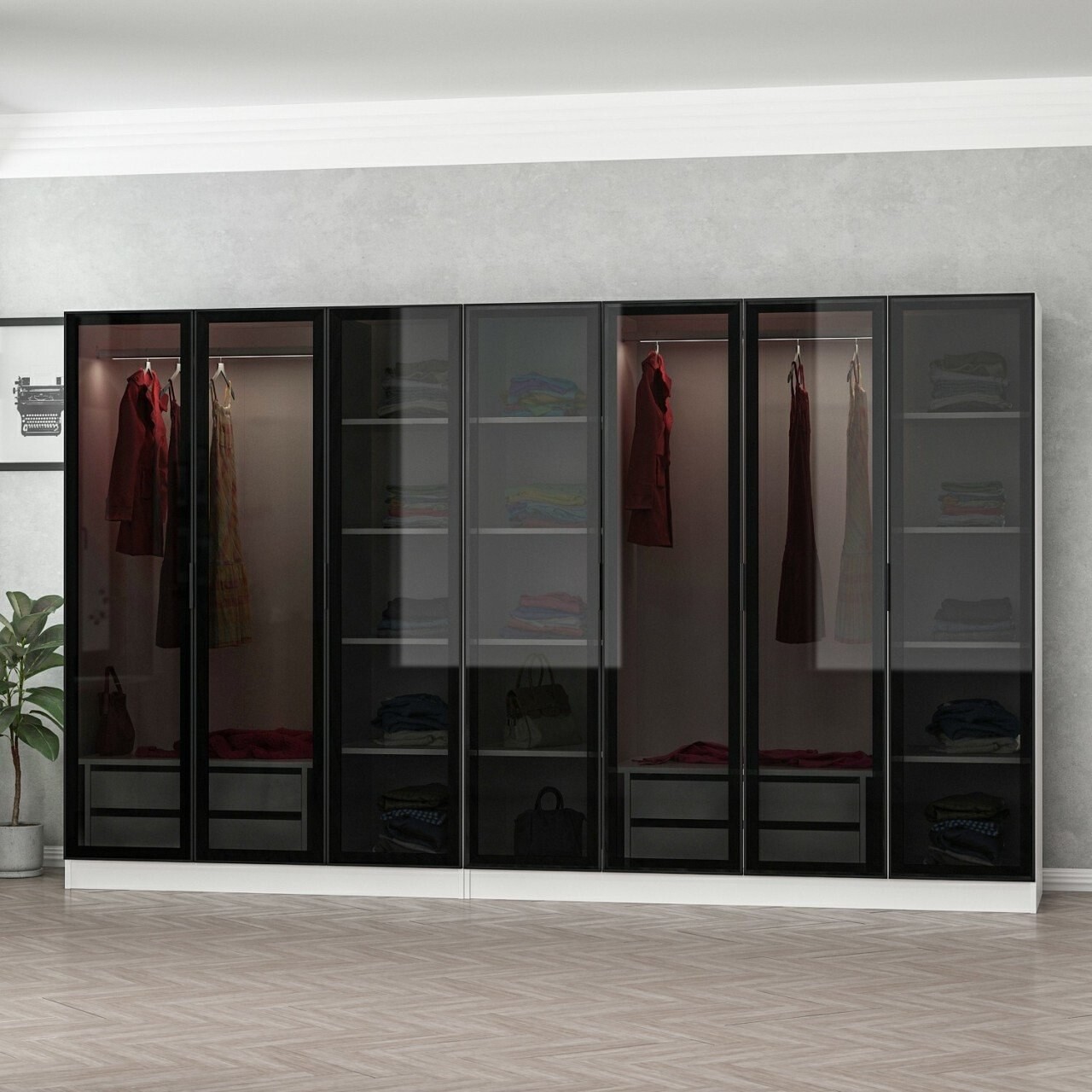 Dulap pentru haine, Minerva, Kale, 315x190x52 cm, PAL, Alb/Negru