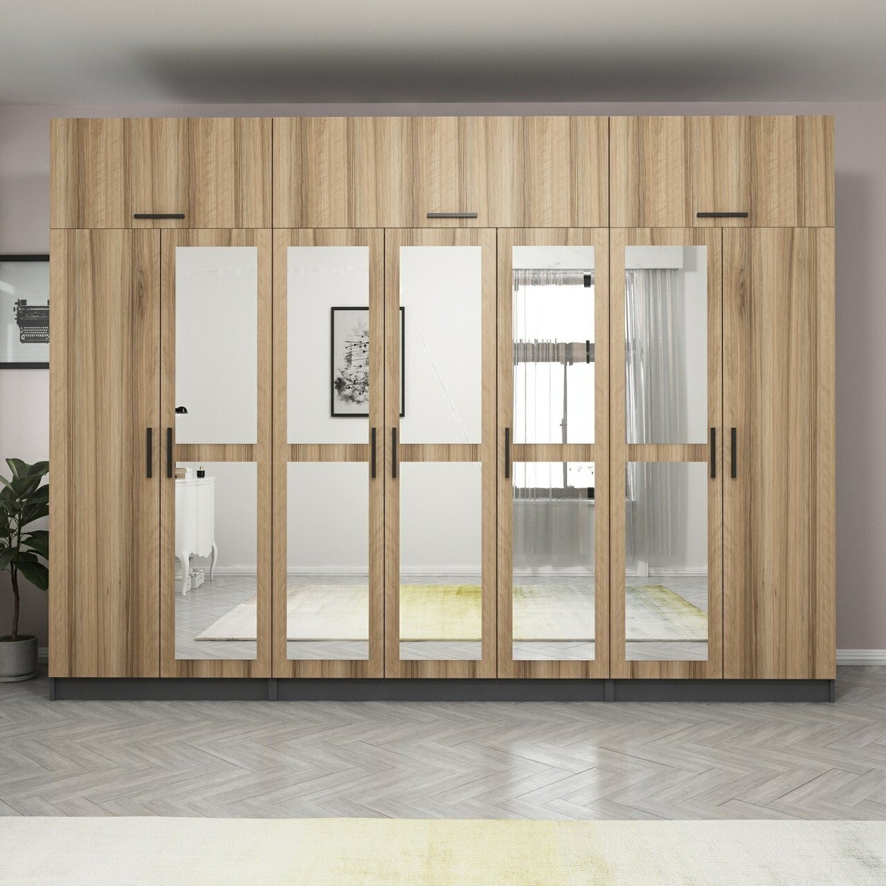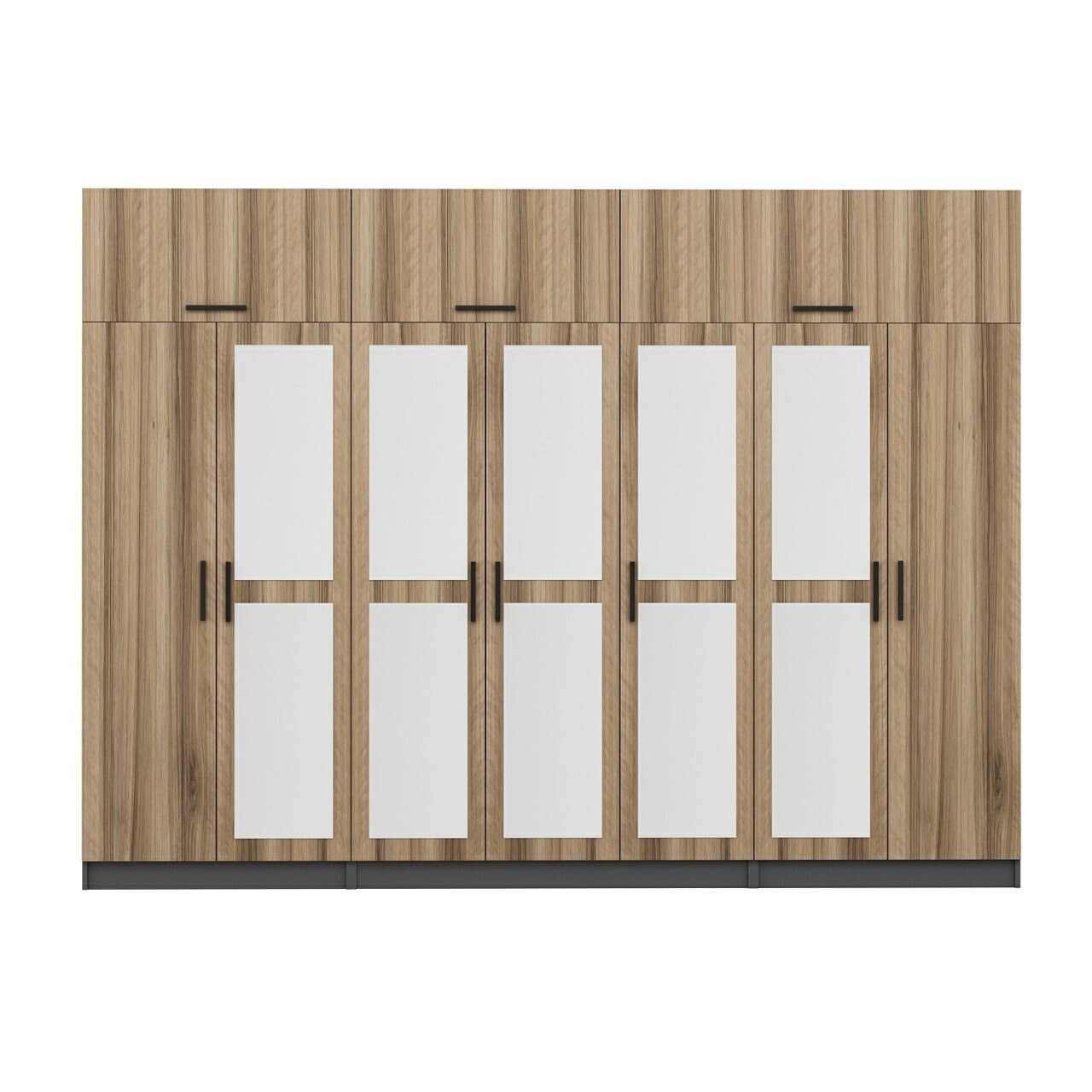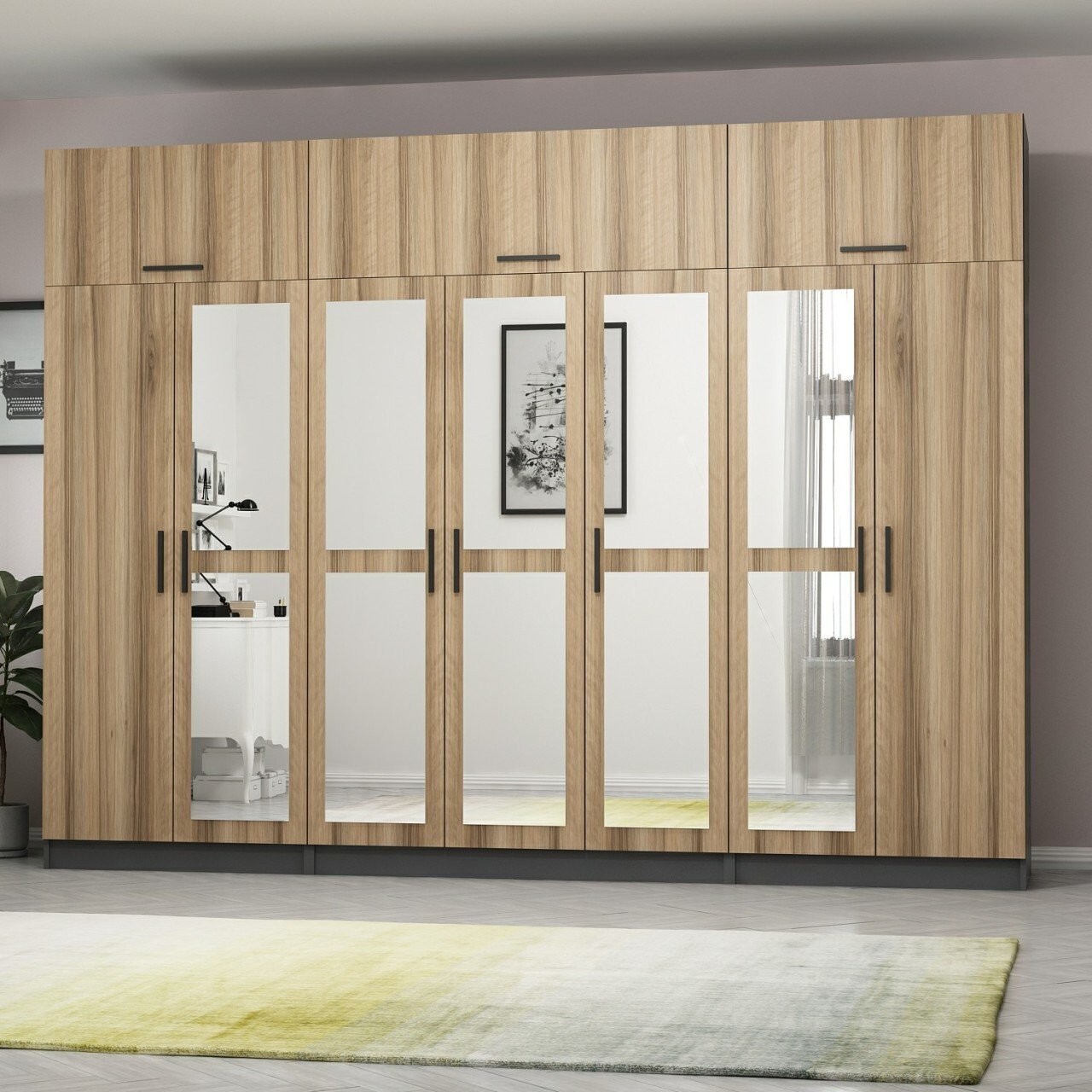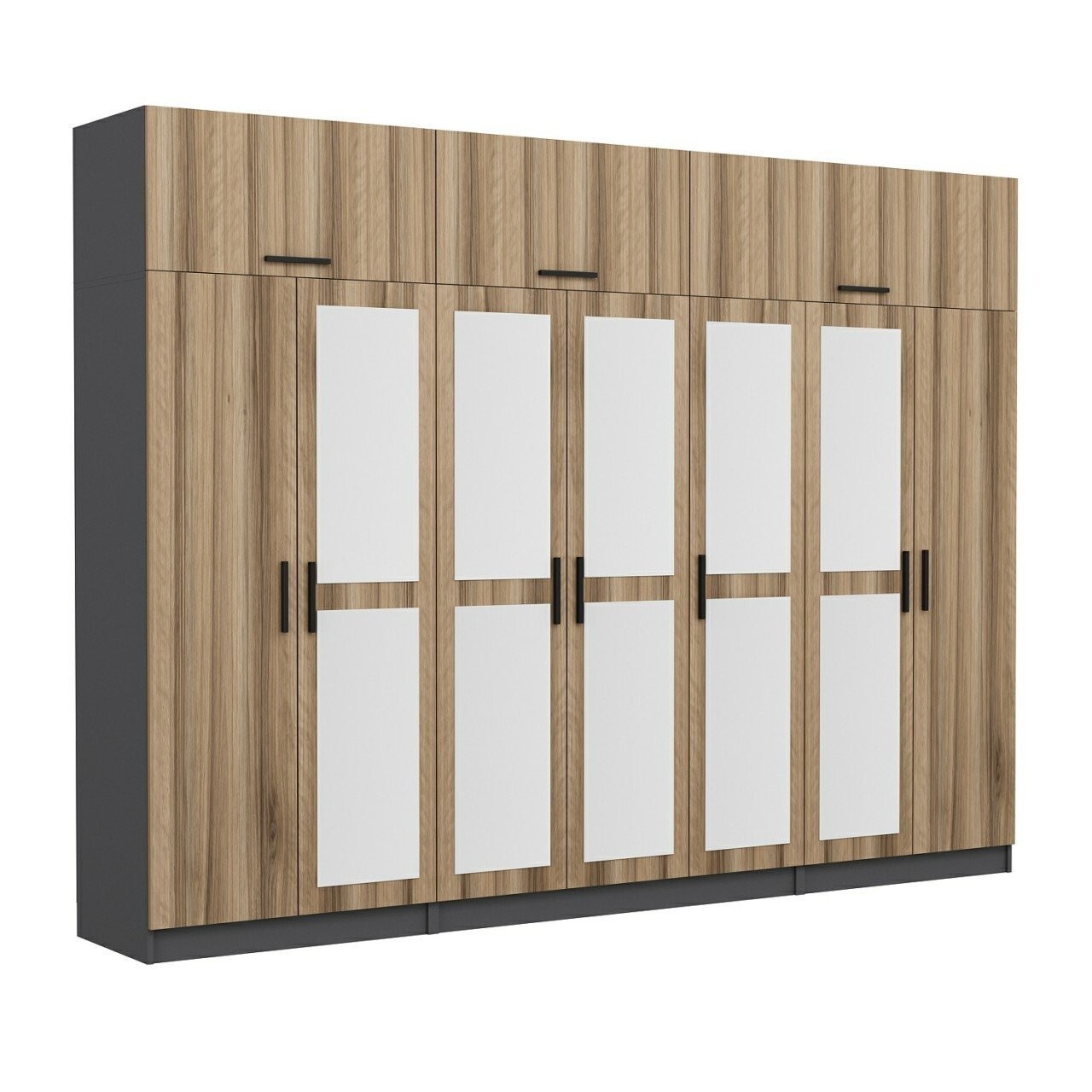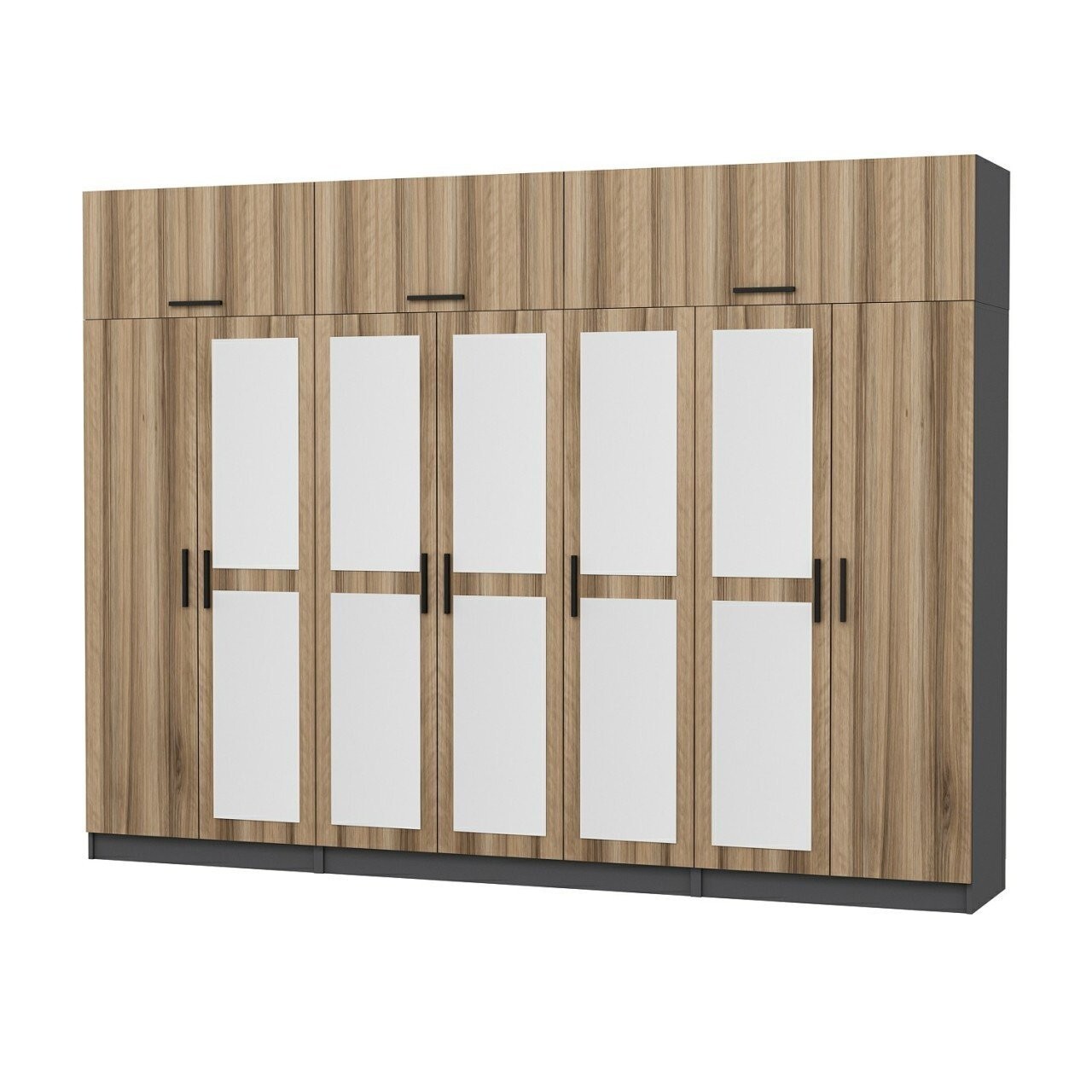Dulap pentru haine, Minerva, Kale, 315x235x52 cm, PAL, Nuc / Antracit