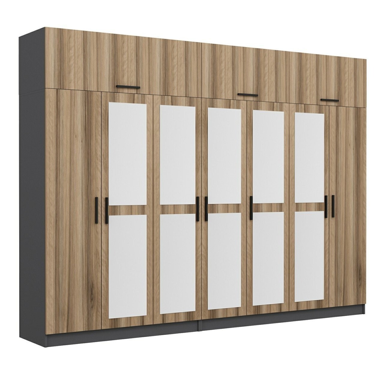 Dulap pentru haine, Minerva, Kale, 315x255x52 cm, PAL, Nuc / Antracit