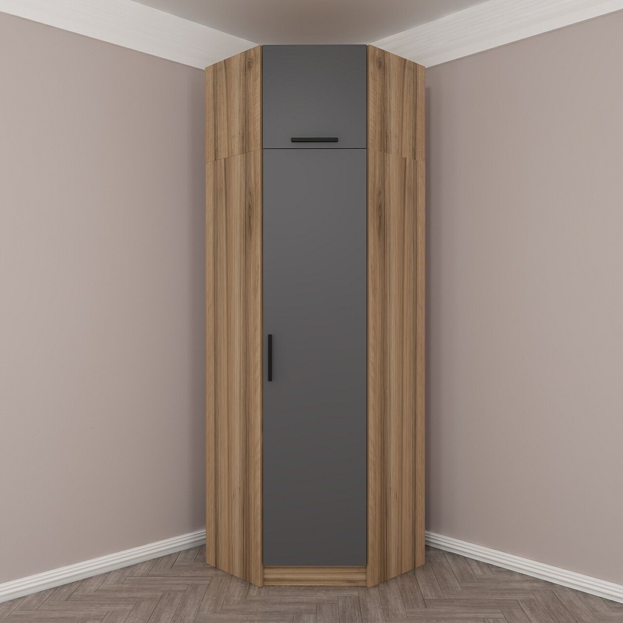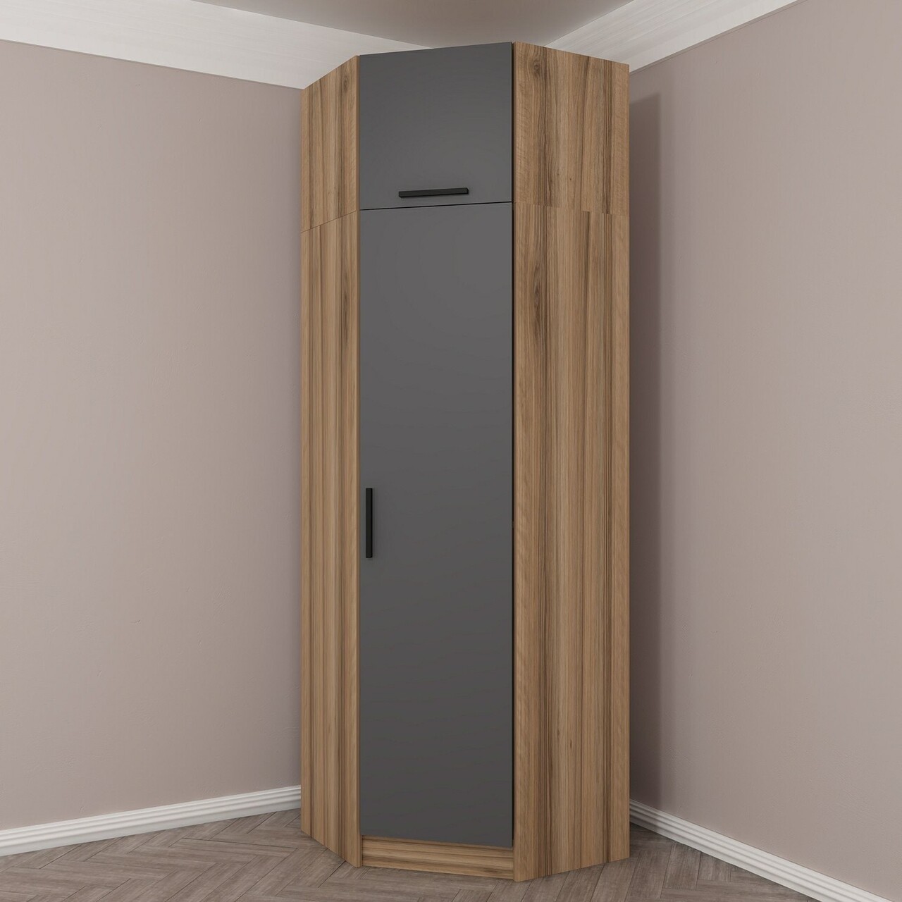 Dulap pentru haine, Minerva, Kale Anthracite Oak, 74x255x52 cm, PAL, Antracit / Stejar
