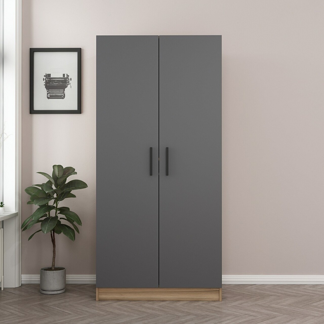 Dulap pentru haine, Minerva, Kale Anthracite Oak, 90x190x52 cm, PAL, Antracit / Stejar