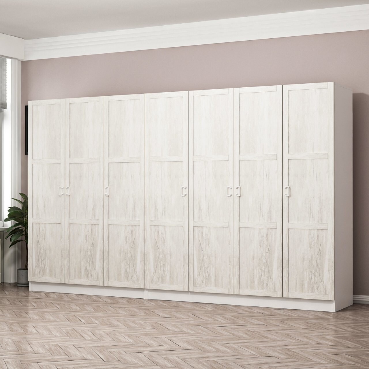 Dulap pentru haine, Minerva, Kale Country, 315x210x52 cm, PAL, Alb