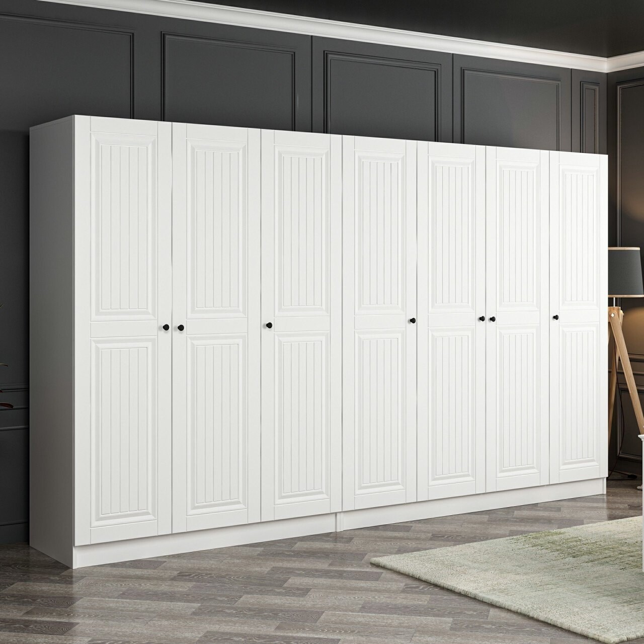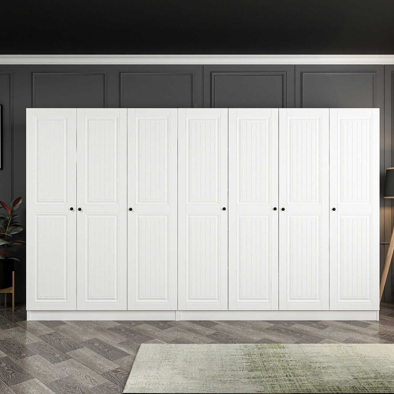Dulap pentru haine, Minerva, Kale Mebran, 315x190x52 cm, PAL, Alb