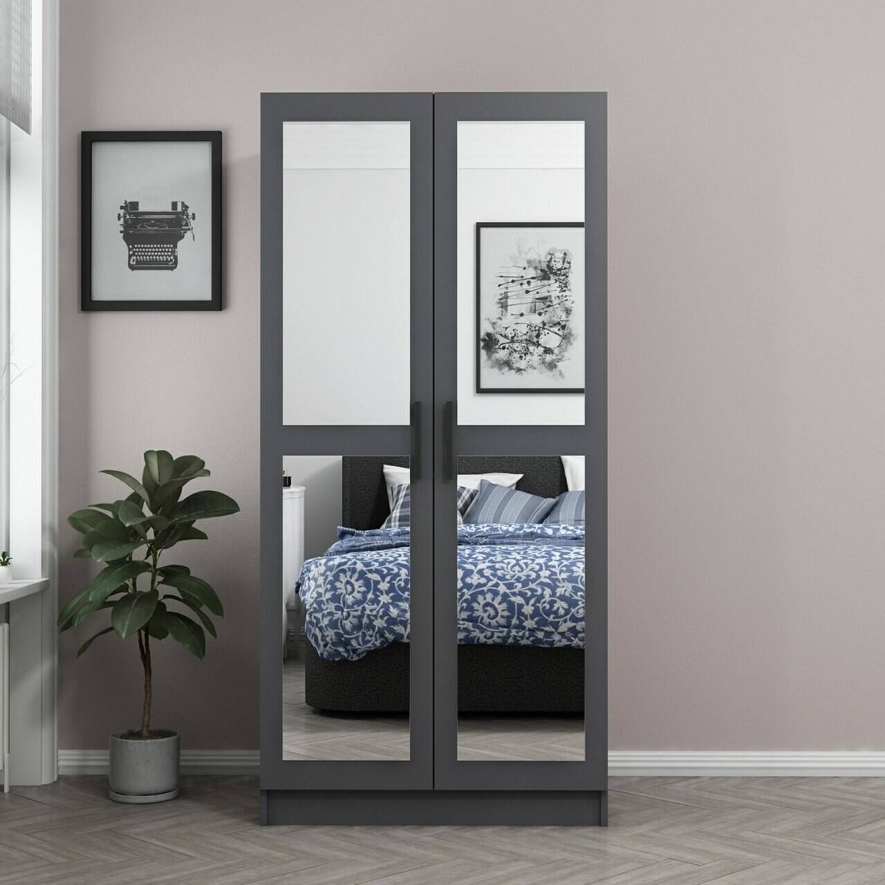 Dulap pentru haine, Minerva, Kale Mirror Anthracite, 90x210x52 cm, PAL, Antracit