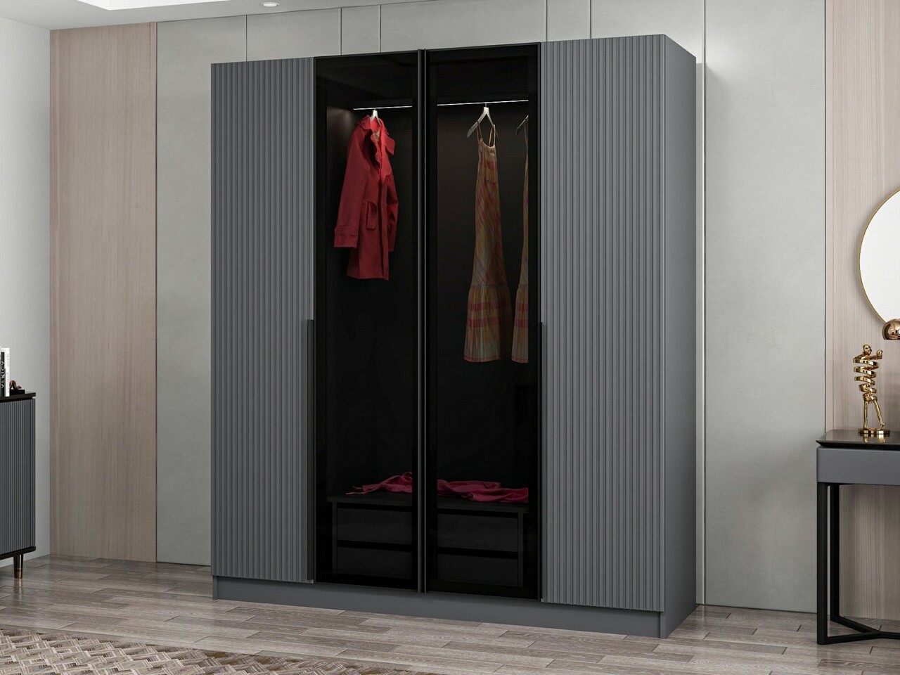 Dulap pentru haine, Minerva, Kale Plus, 180x210x52 cm, PAL, Fumuriu