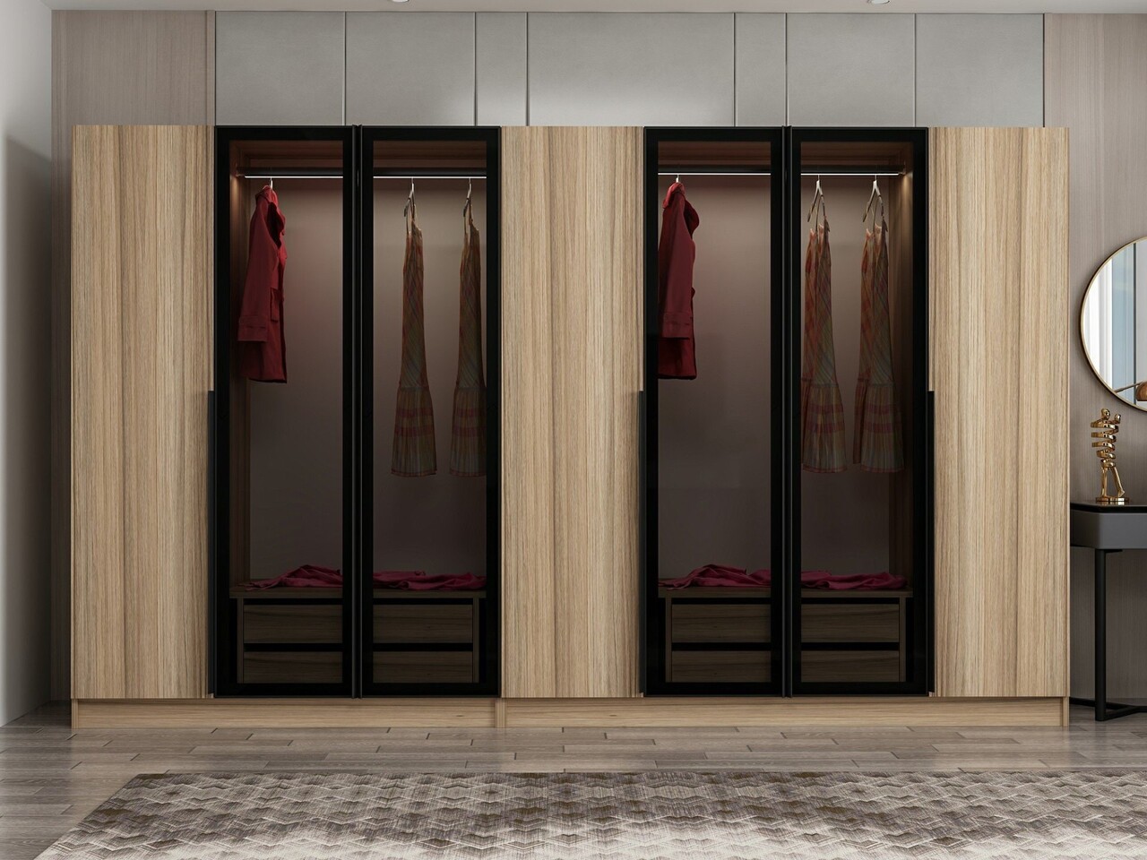 Dulap pentru haine, Minerva, Kale Plus, 315x210x52 cm, PAL, Fume / Stejar