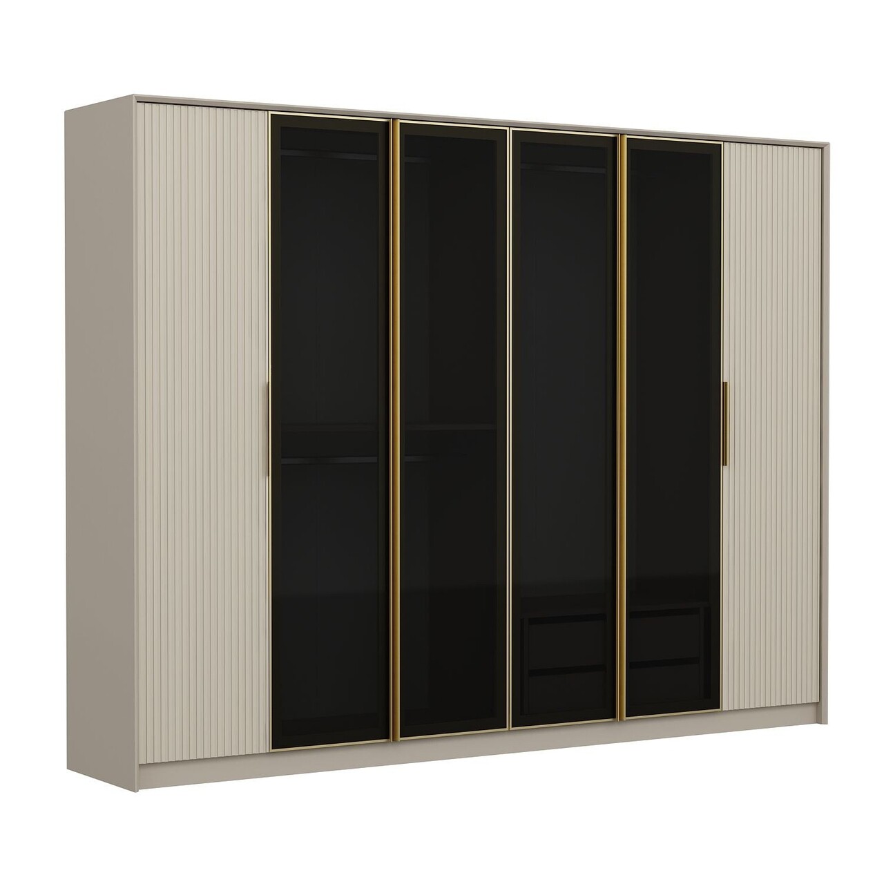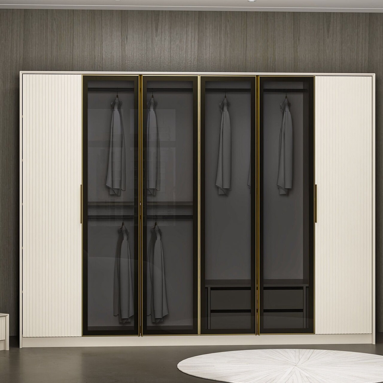 Dulap pentru haine, Minerva, Luxe, 274x210x52 cm, PAL, Alb / Auriu / Fum
