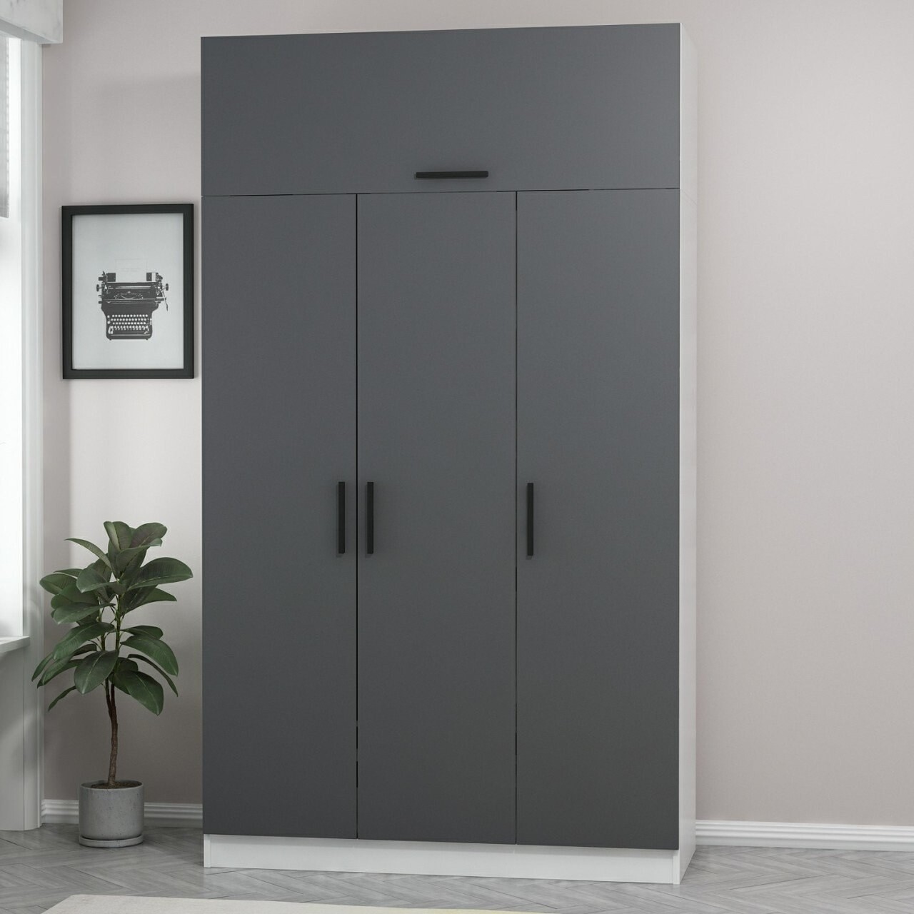 Dulap pentru haine, Minerva, Minar 3 Kapak 2 Çekmece 255, 135x255x52 cm, PAL, Alb / Antracit