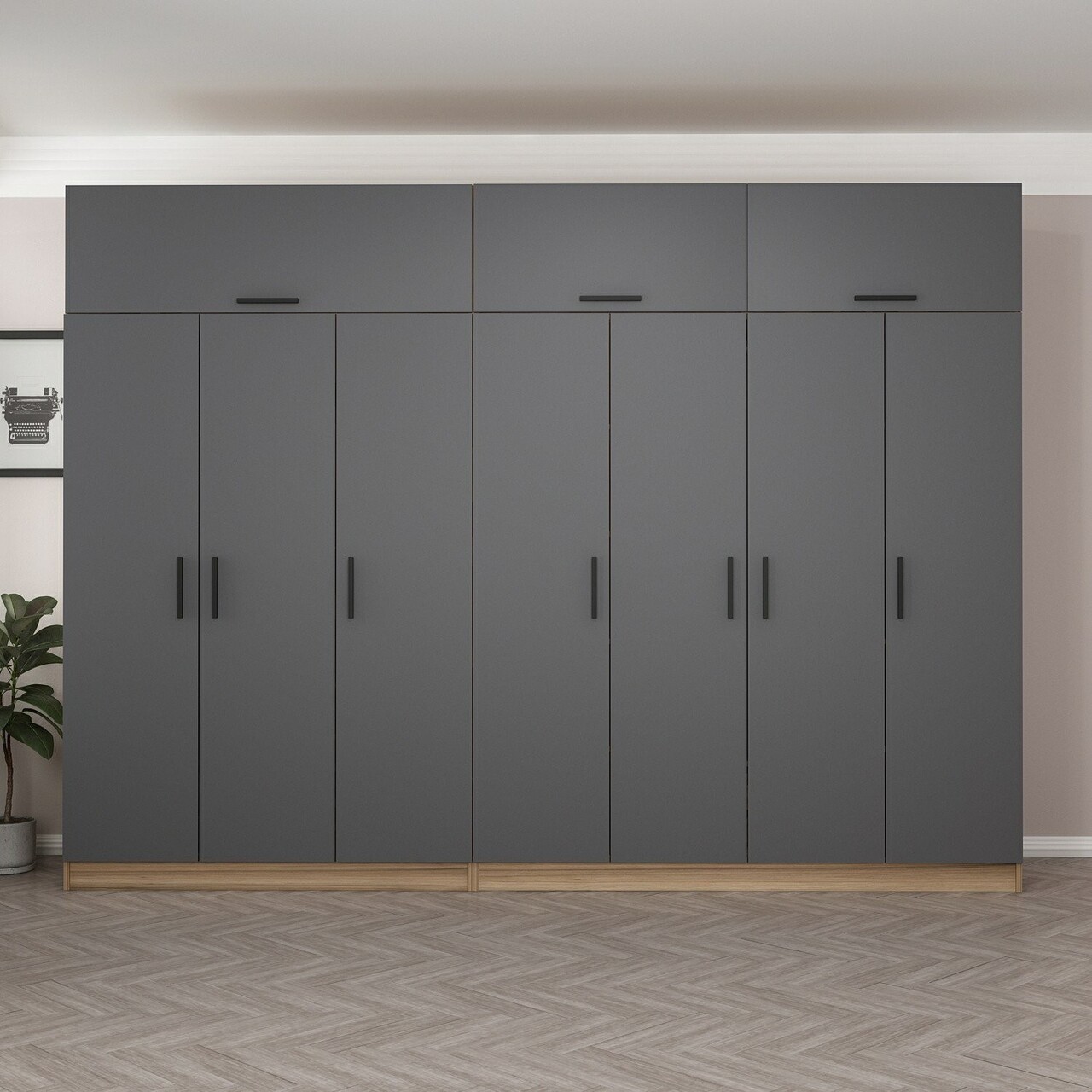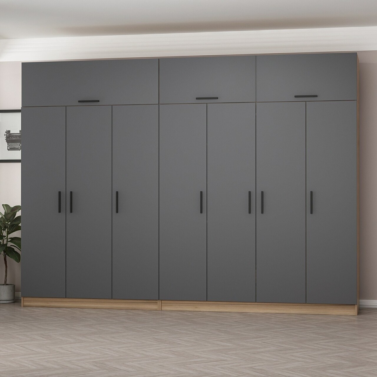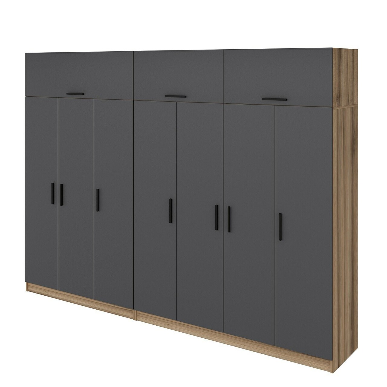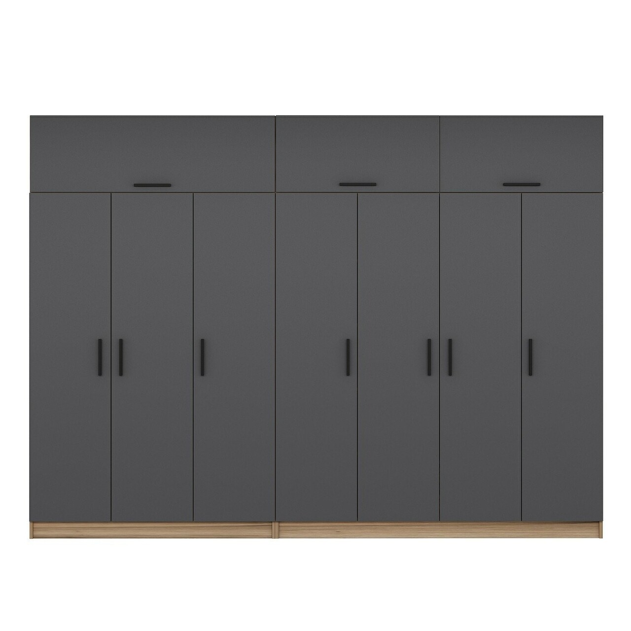 Dulap pentru haine, Minerva, Minar Kale, 315x235x52 cm, PAL, Antracit / Dore