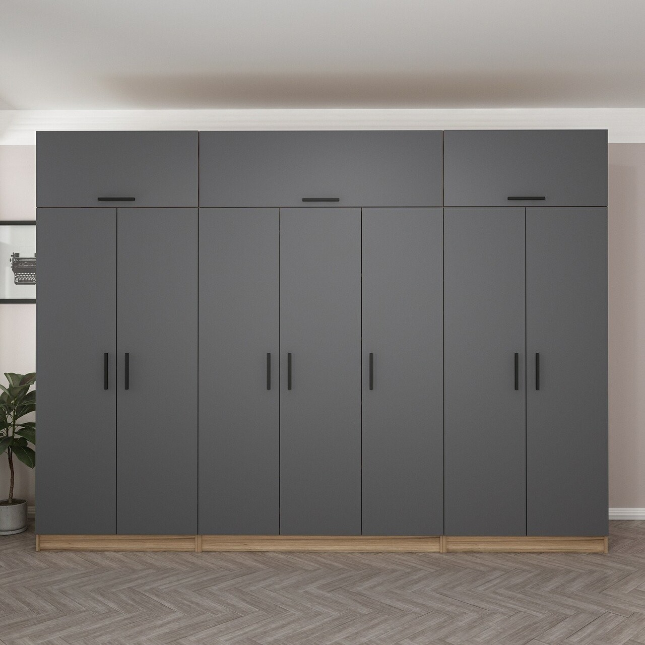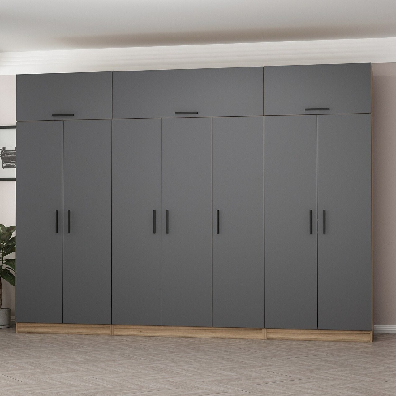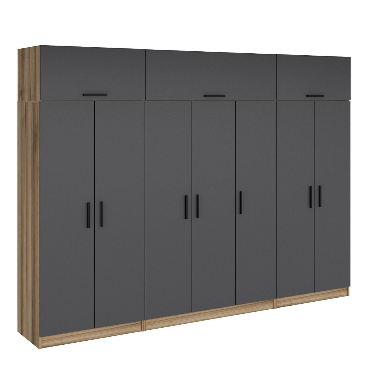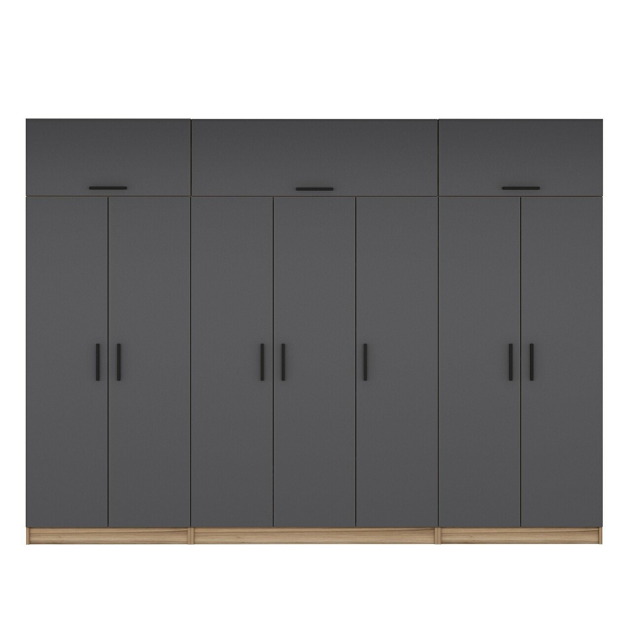 Dulap pentru haine, Minerva, Minar Kale, 315x255x52 cm, PAL, Antracit / Dore