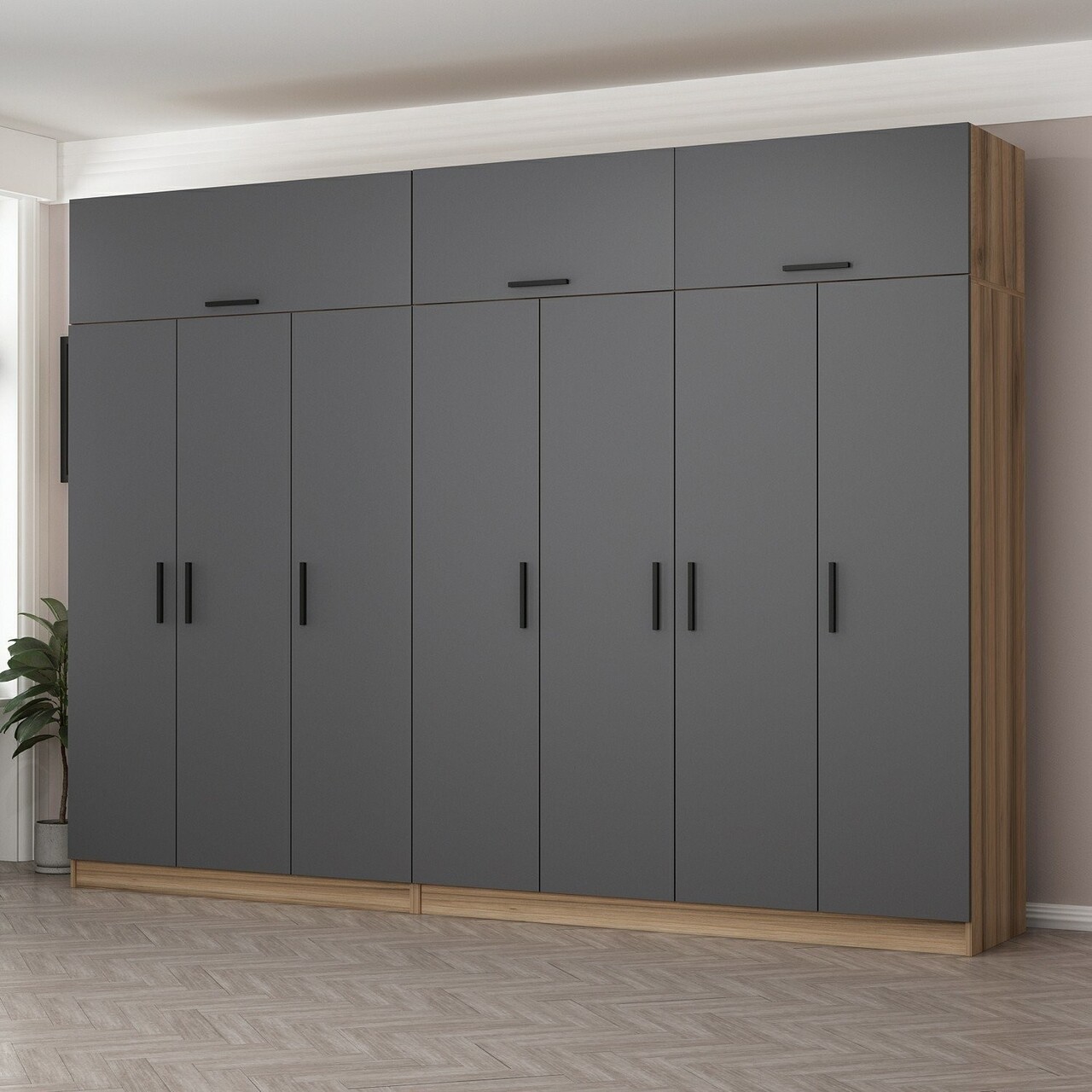 Dulap pentru haine, Minerva, Minar Kale, 315x255x52 cm, PAL, Antracit / Dore