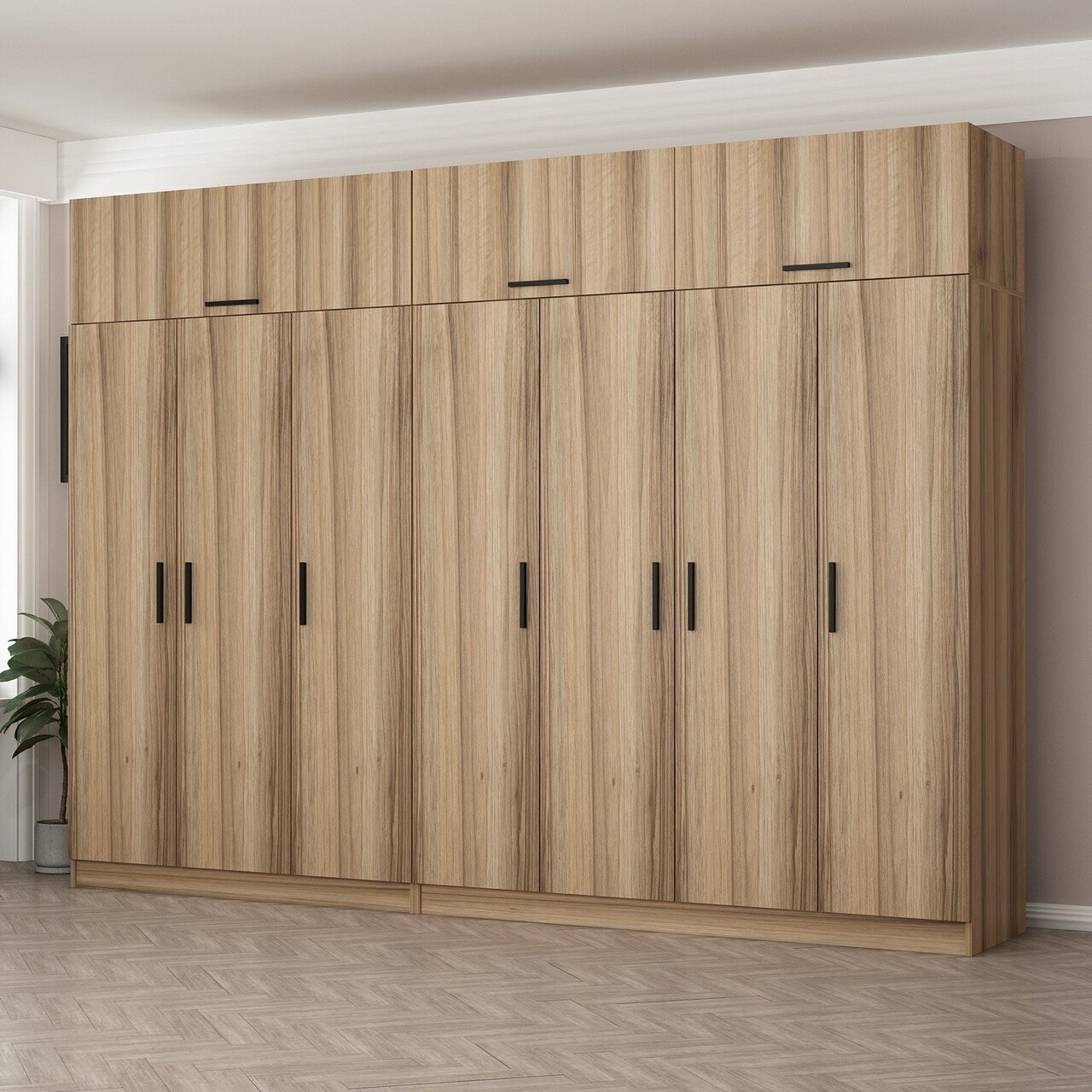 Dulap pentru haine, Minerva, Minar Kale, 315x255x52 cm, PAL, Maro