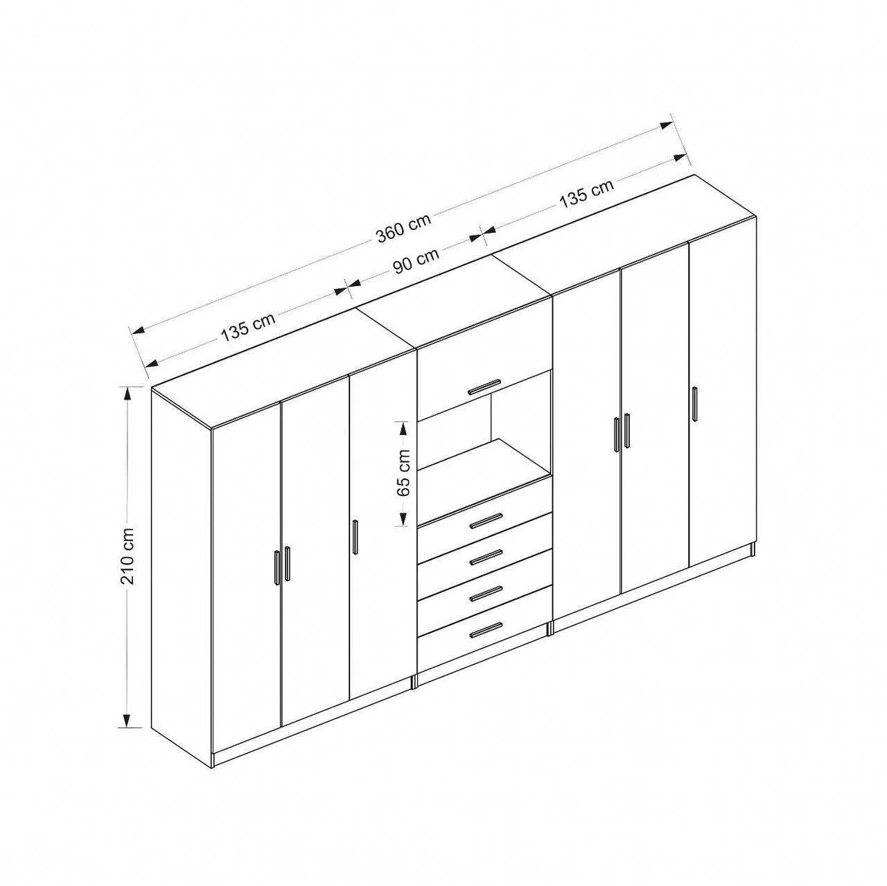 Dulap pentru haine, Minerva, Minar Kale, 360x210x52 cm, PAL, Alb