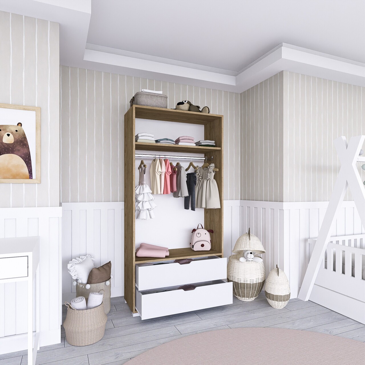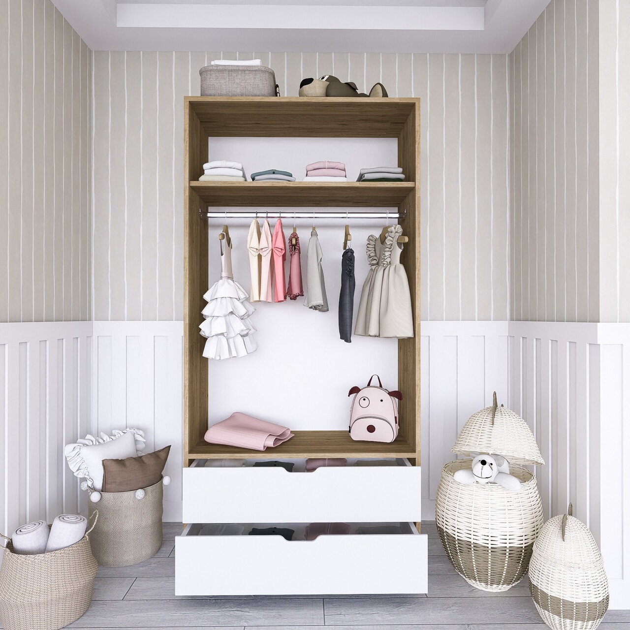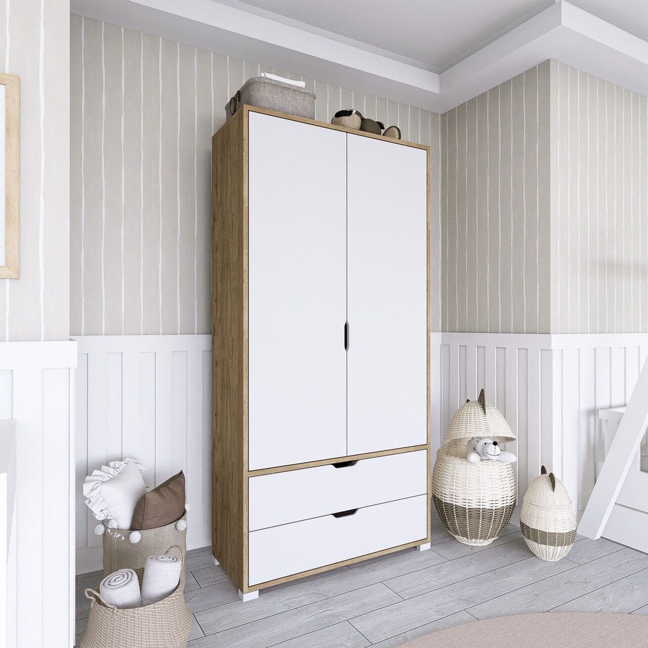 Dulap pentru haine, Miwood, 90 Cm 1600-015, 90x183x45 cm, PAL, Nuc deschis / Alb