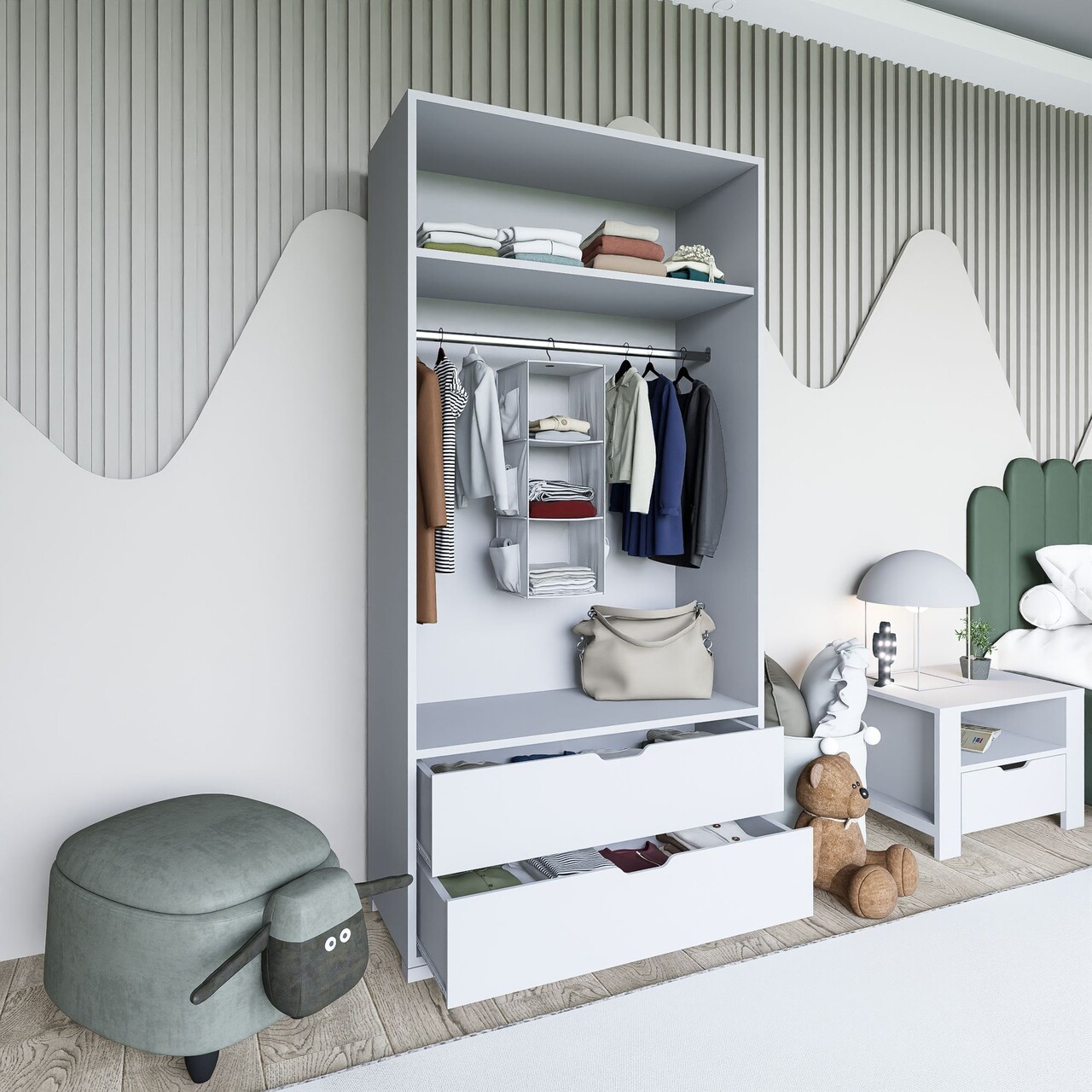 Dulap pentru haine, Miwood, 90 cm 1600-016, 90x183x45 cm, PAL, Alb