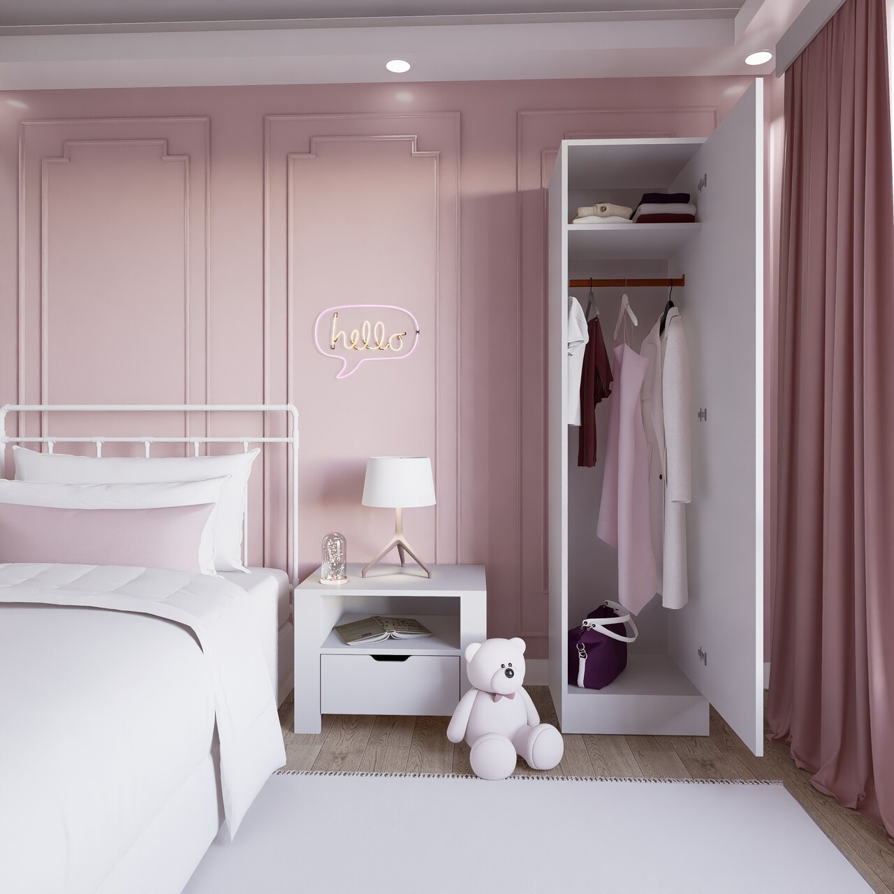 Dulap pentru haine, Miwood, Daisy 1600-38, 45x182x53 cm, PAL, Alb mat