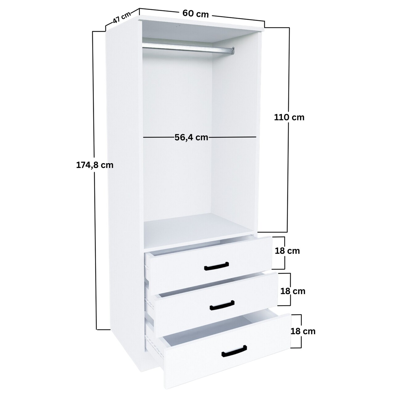 Dulap pentru haine, Miwood, Easy 1600-58, 60x174 cm, PAL, Alb mat