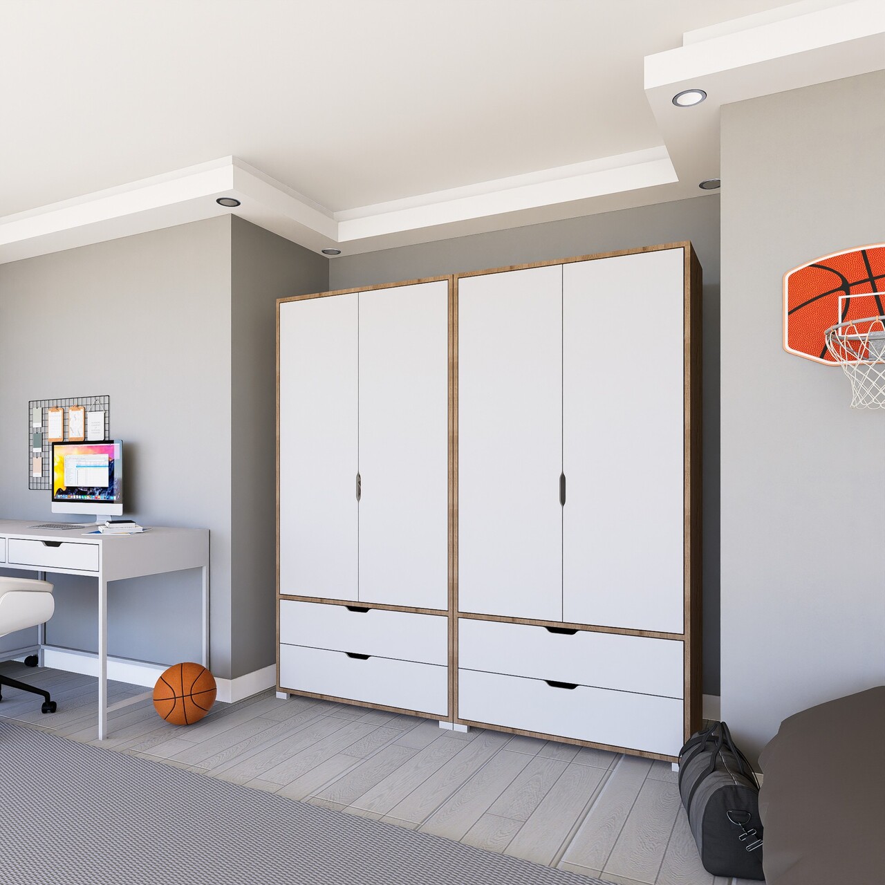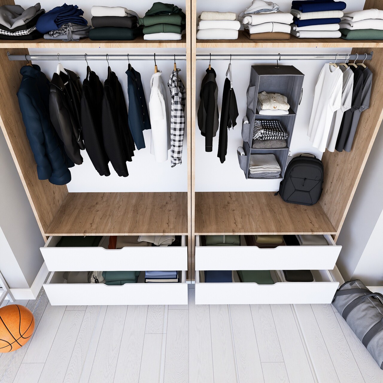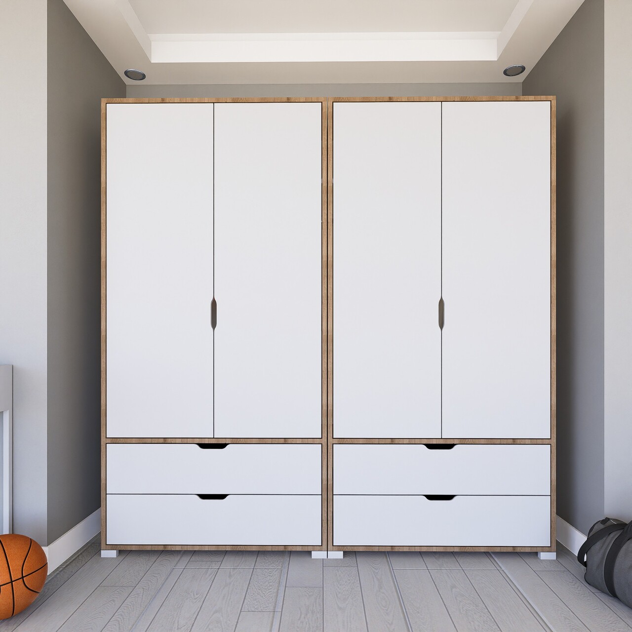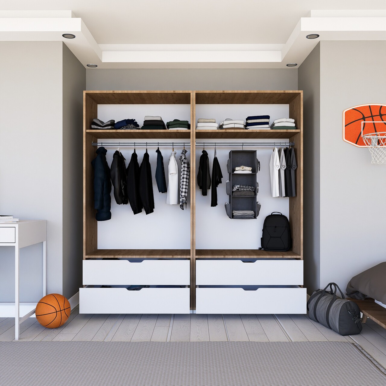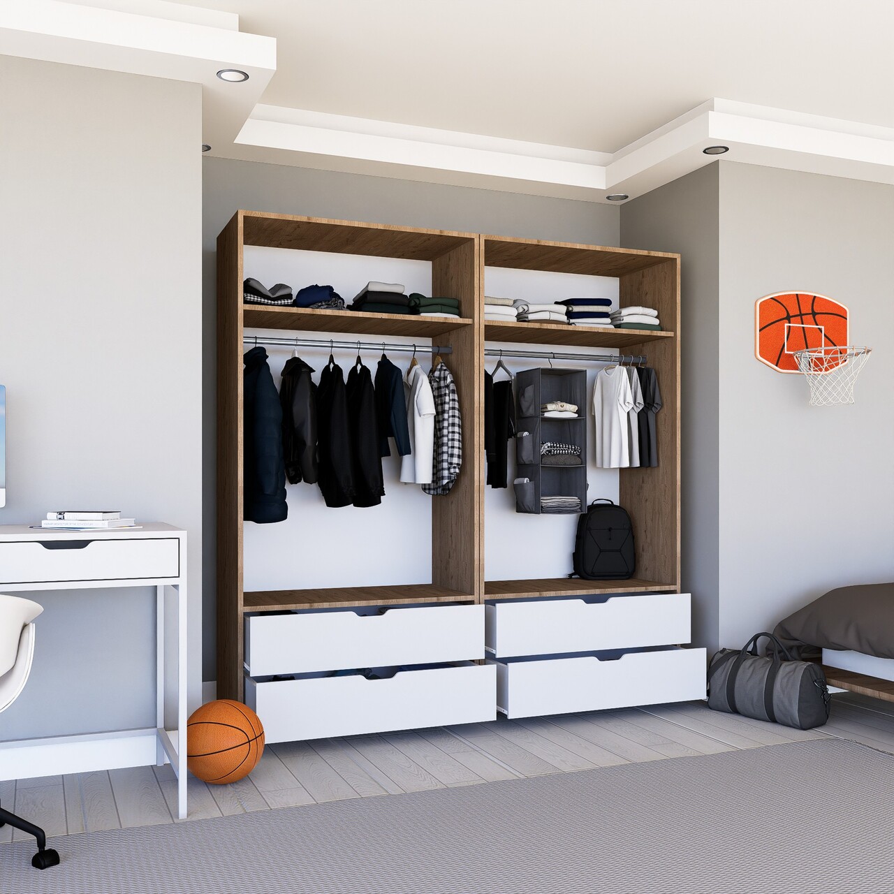 Dulap pentru haine, Miwood, Nisan 1600-021, 180x183x45 cm, PAL, Nuc deschis / Alb