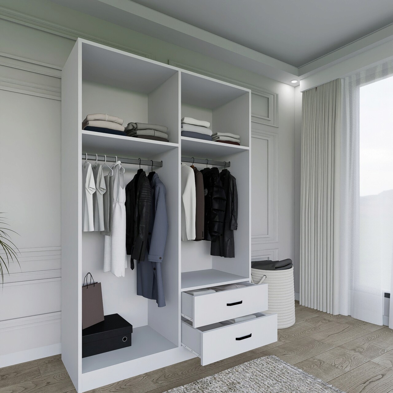 Dulap pentru haine, Miwood, Yaman 1600-033, 120x180x45 cm, PAL, Alb mat