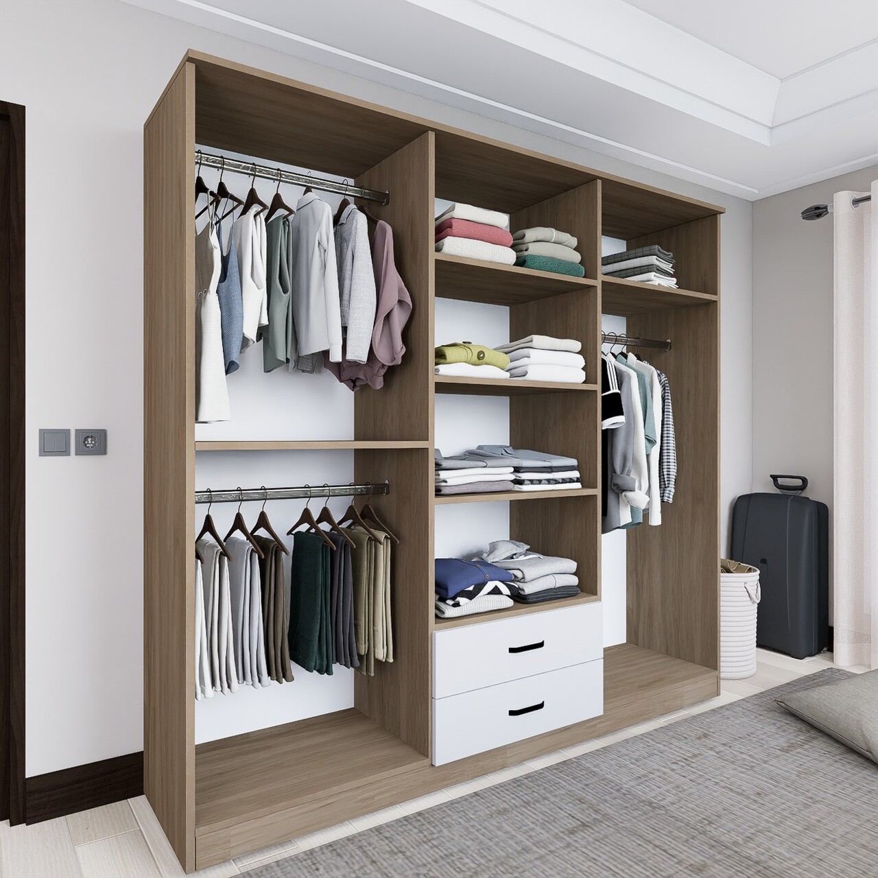 Dulap pentru haine, Miwood, Yaman 1600-64, 180x190x45 cm, PAL, Nuc deschis