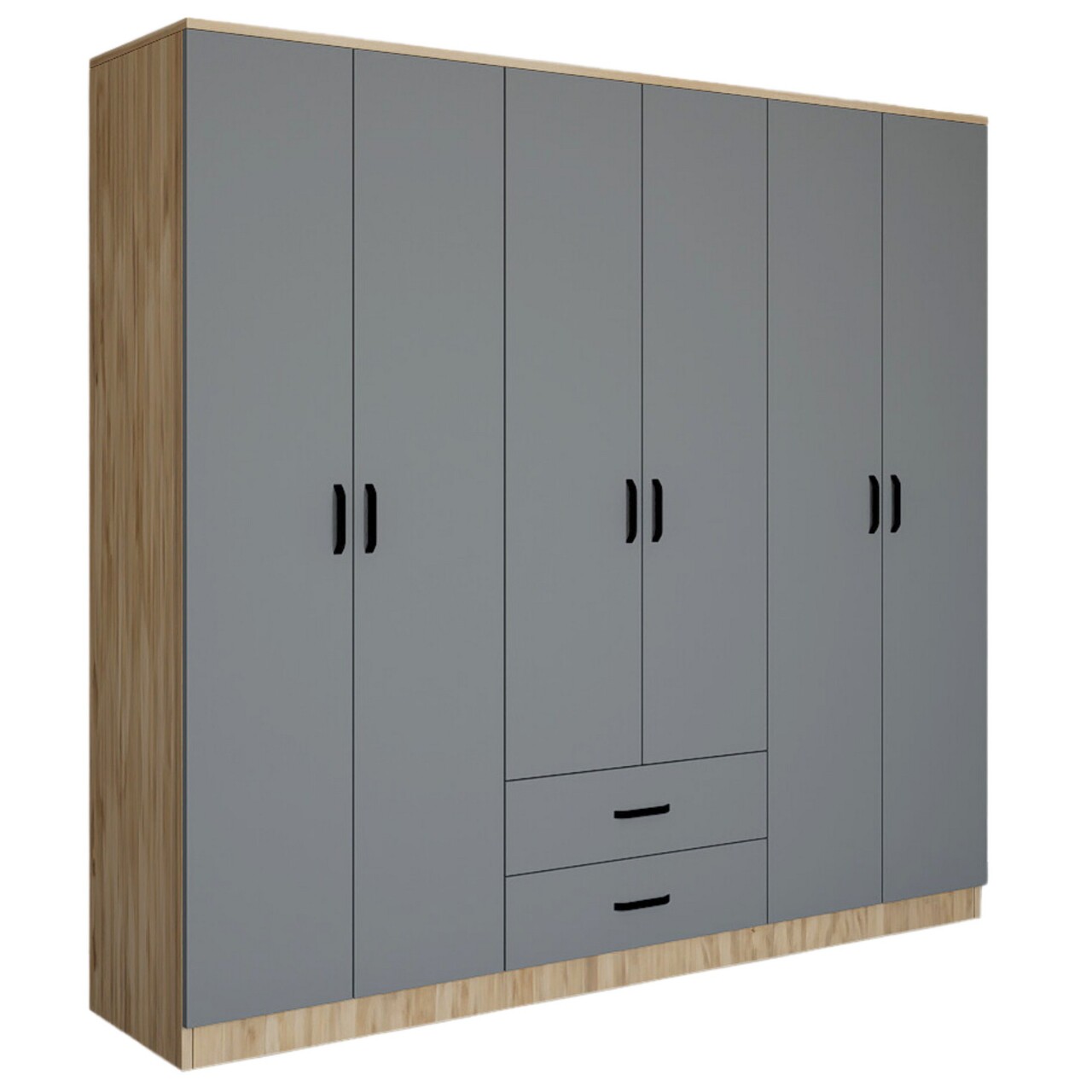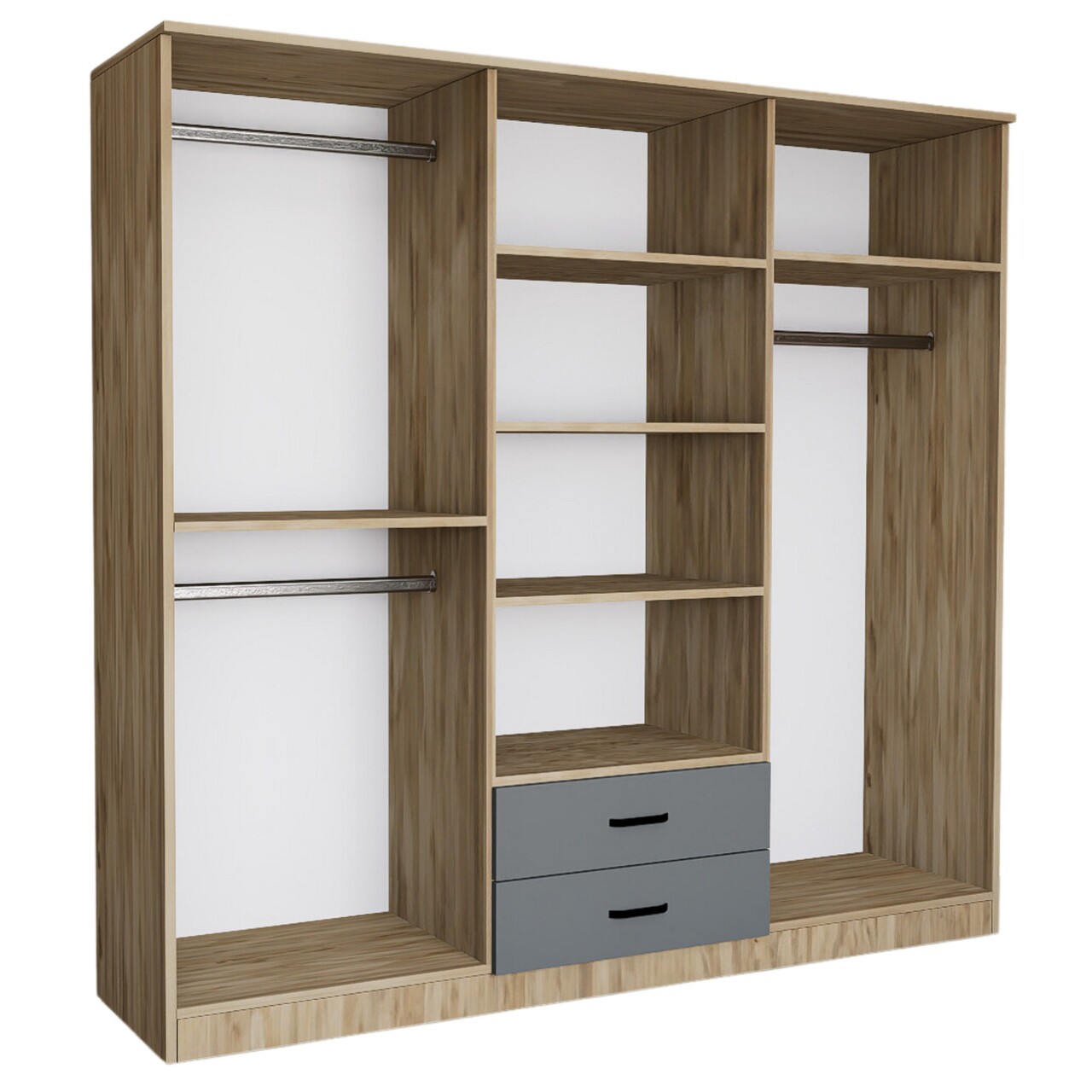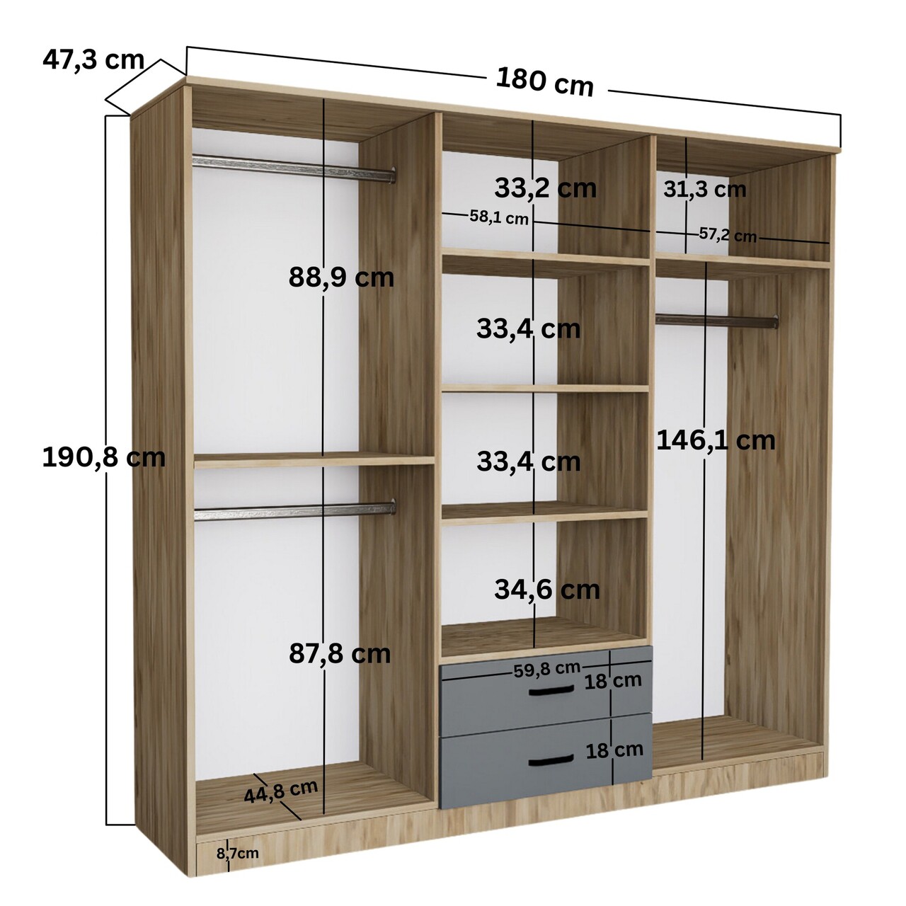 Dulap pentru haine, Miwood, Yaman Luna, 180x190x45 cm, PAL, Gri/Alb