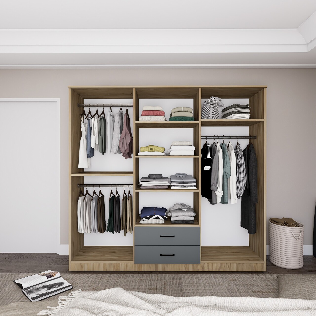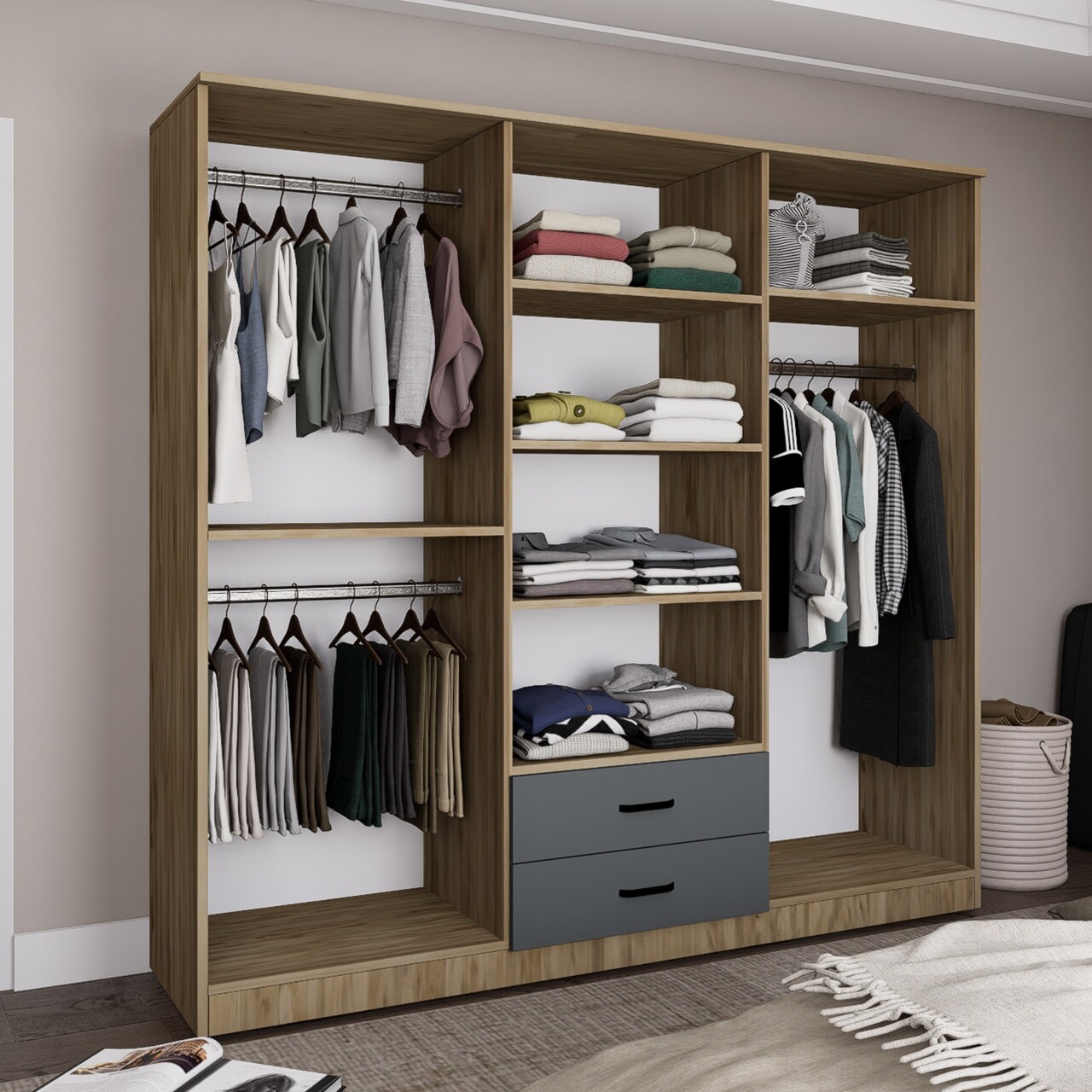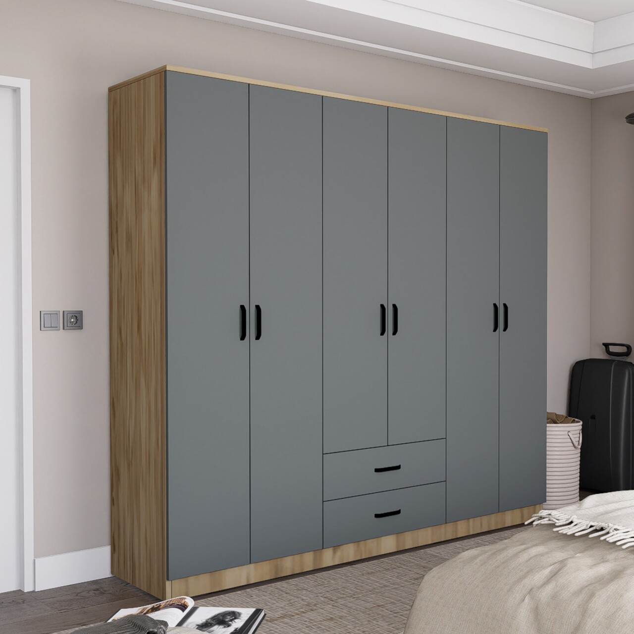 Dulap pentru haine, Miwood, Yaman Luna, 180x190x45 cm, PAL, Gri/Alb