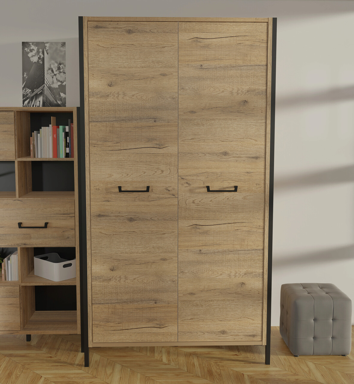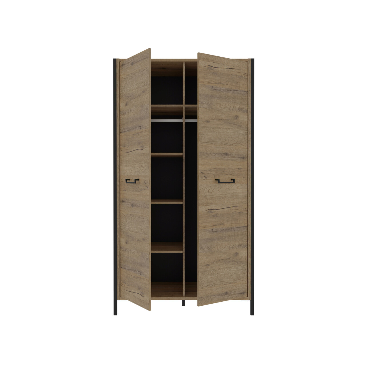 Dulap pentru haine Oss, Bedora, 109.1x62.2x199.9 cm, PAL/metal, stejar/negru