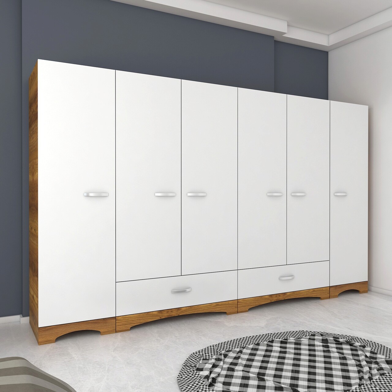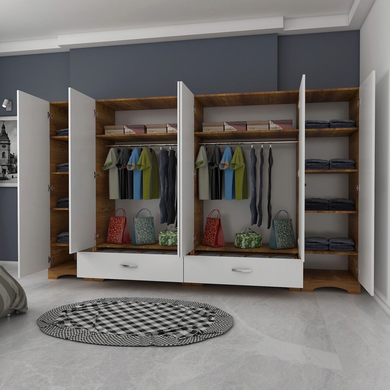Dulap pentru haine, Rani, F4, 243x181x47 cm, PAL, Alb/Maro