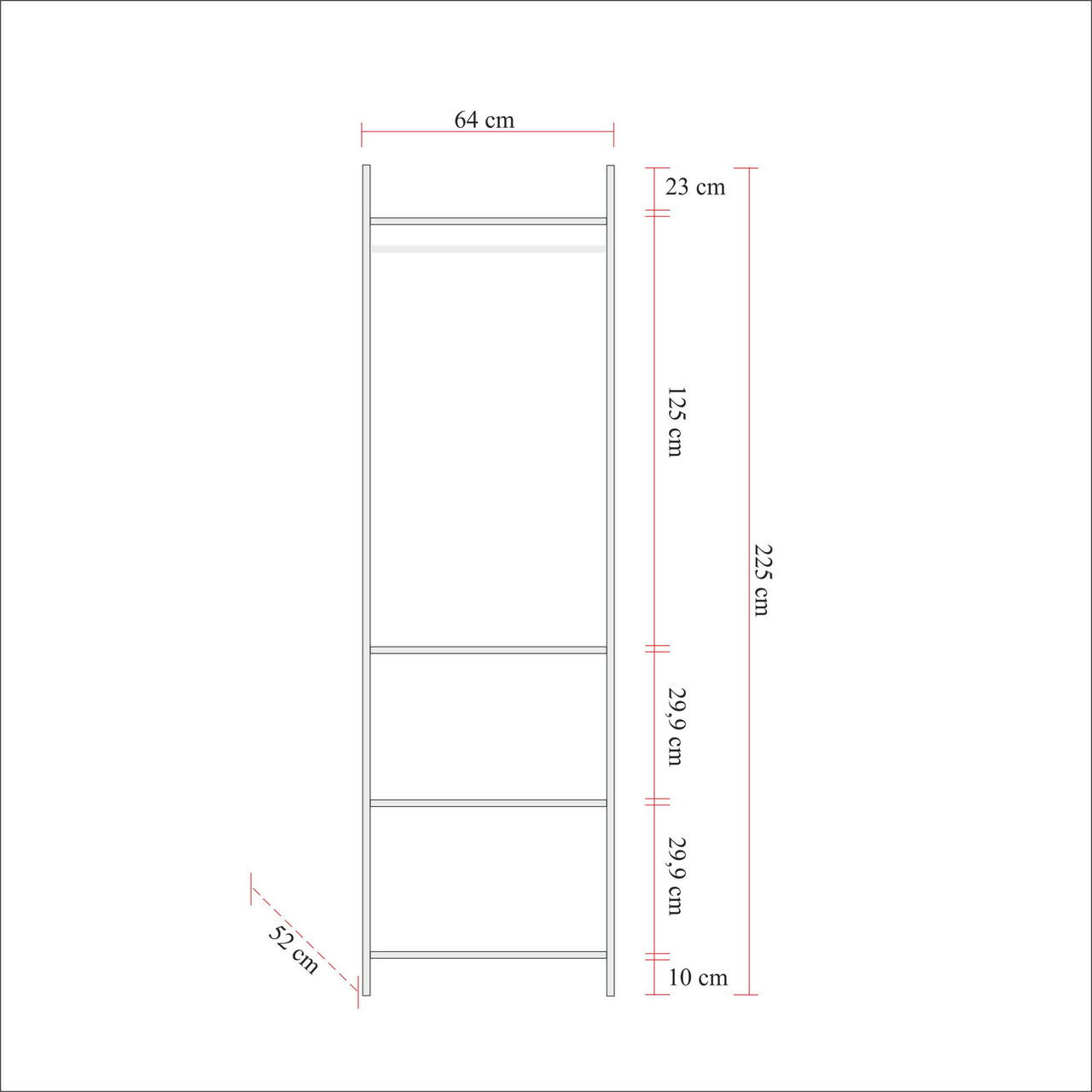 Înălțimea raftului superior: 125 cm
