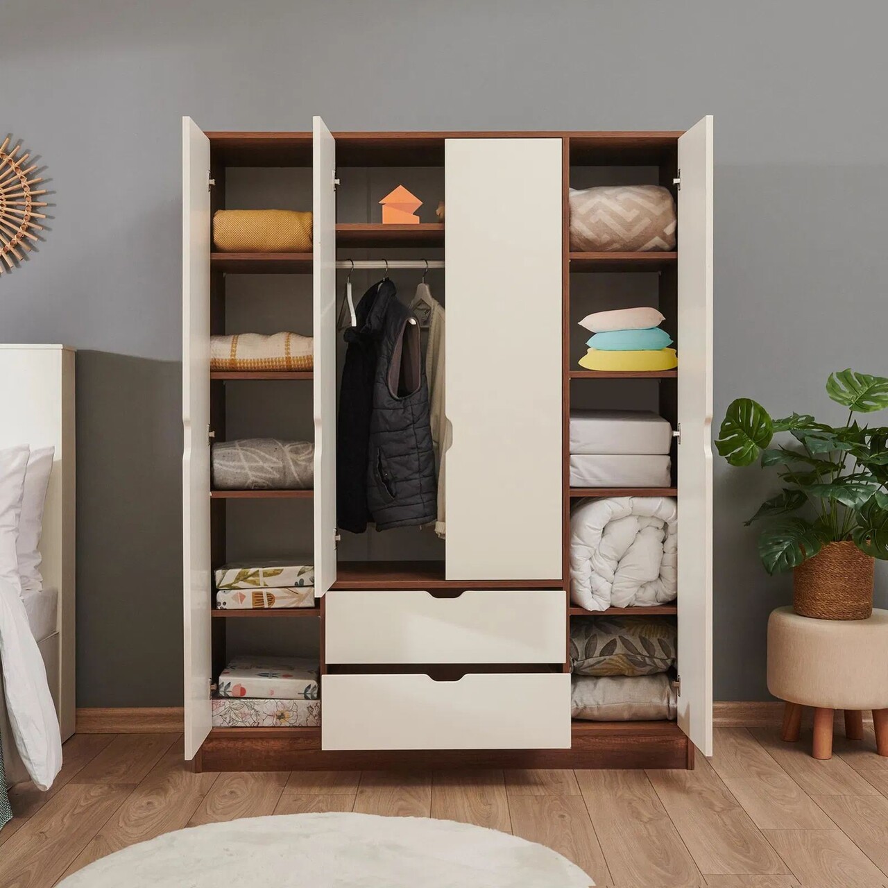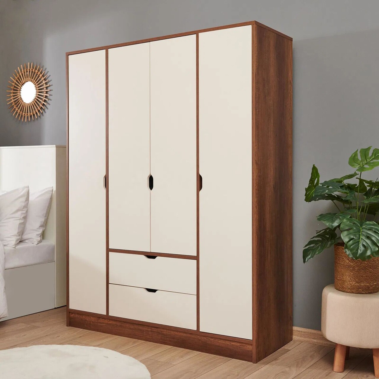 Dulap pentru haine, Tuvalle, Tuval 062, 140x182x50 cm, PAL, Nuc / Piatră Lunii